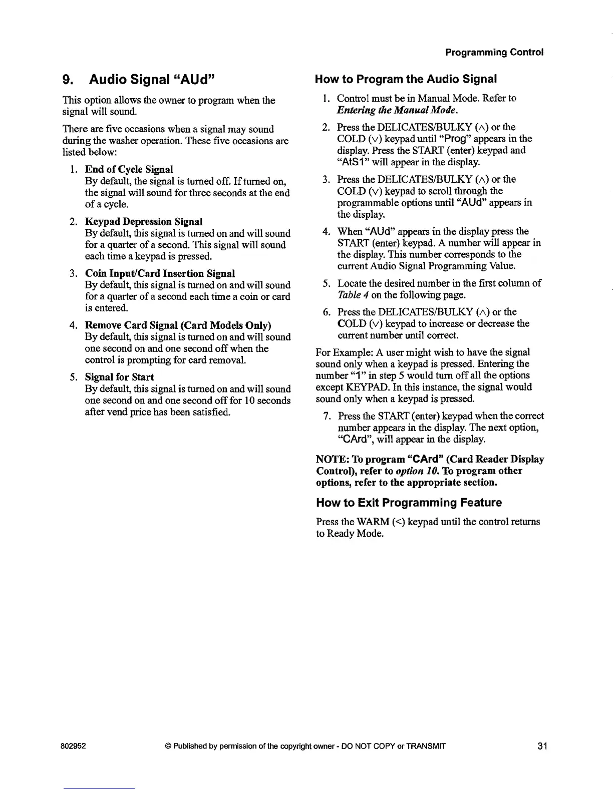 Exit Programming Feature