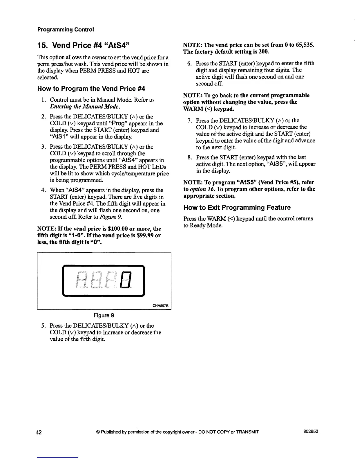 NOTE: The vend price can be set from 0 to 65,535.