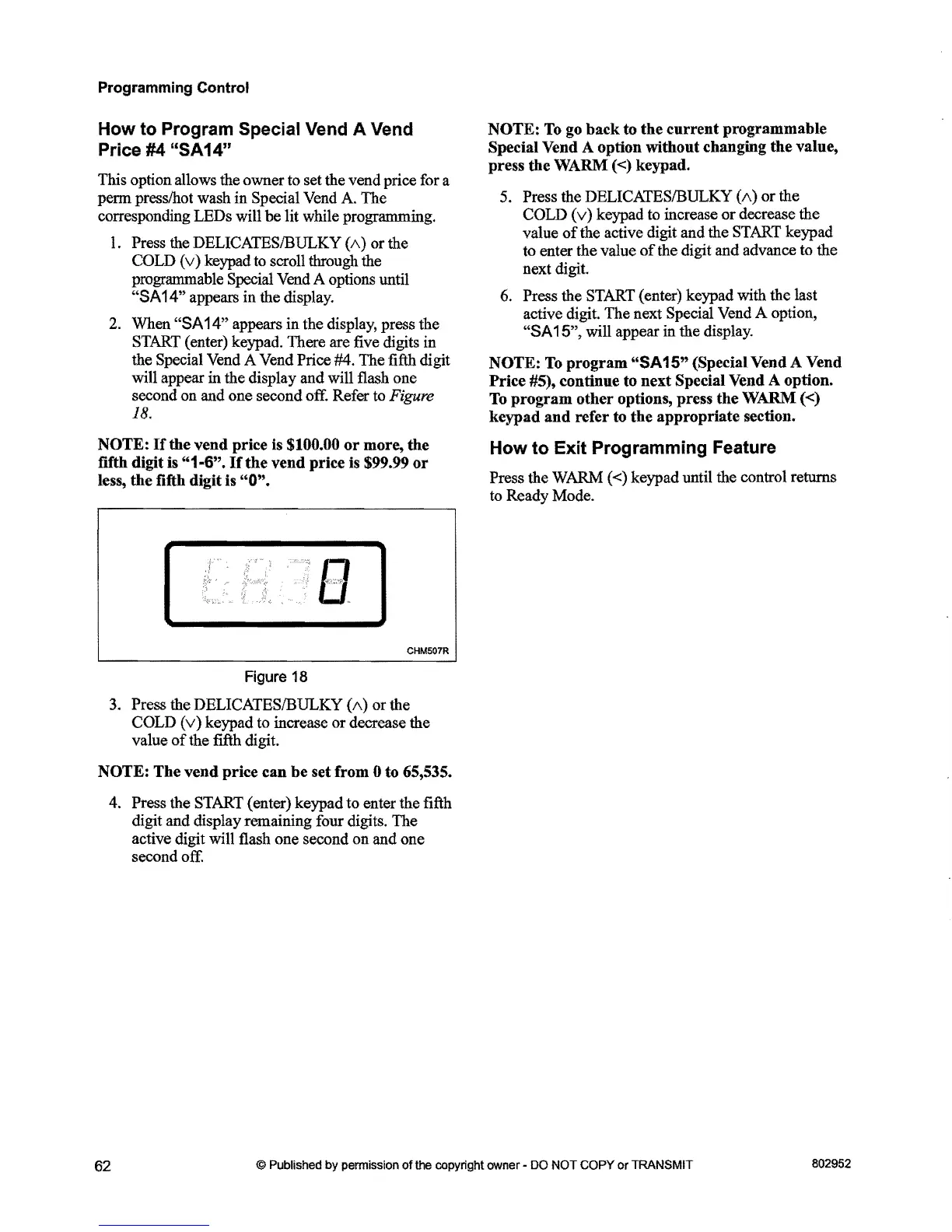 programmable Special Vend A options until