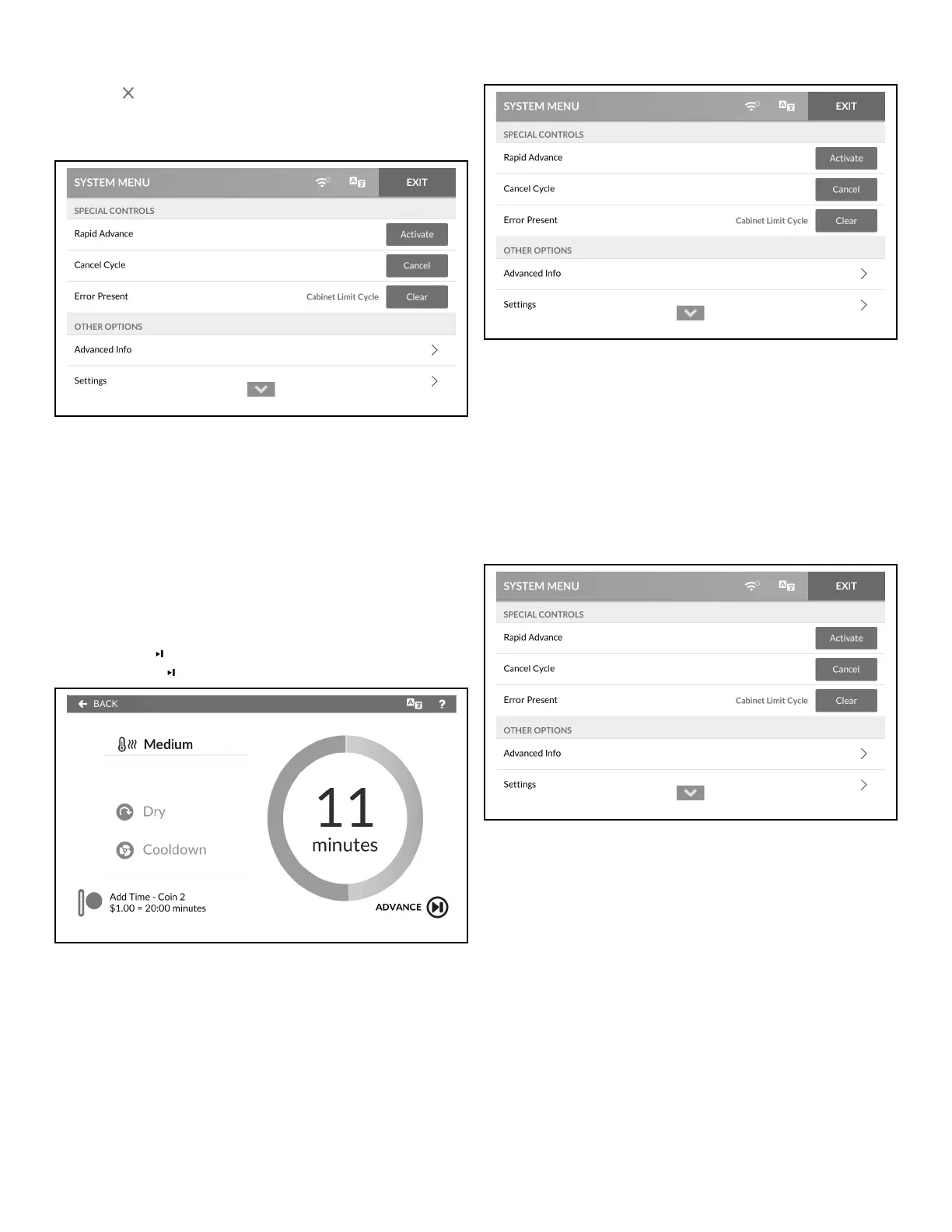 2. Touch CANCEL next to CANCEL CYCLE to end the cycle