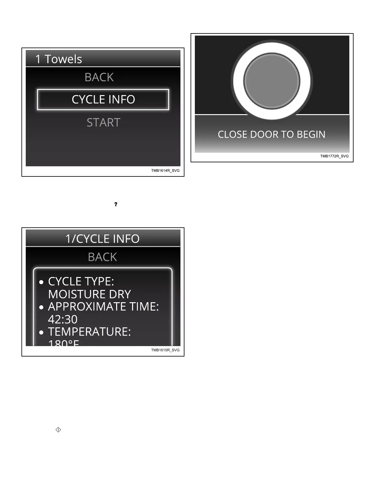 This informs the user of cycle details prior to running the cycle,