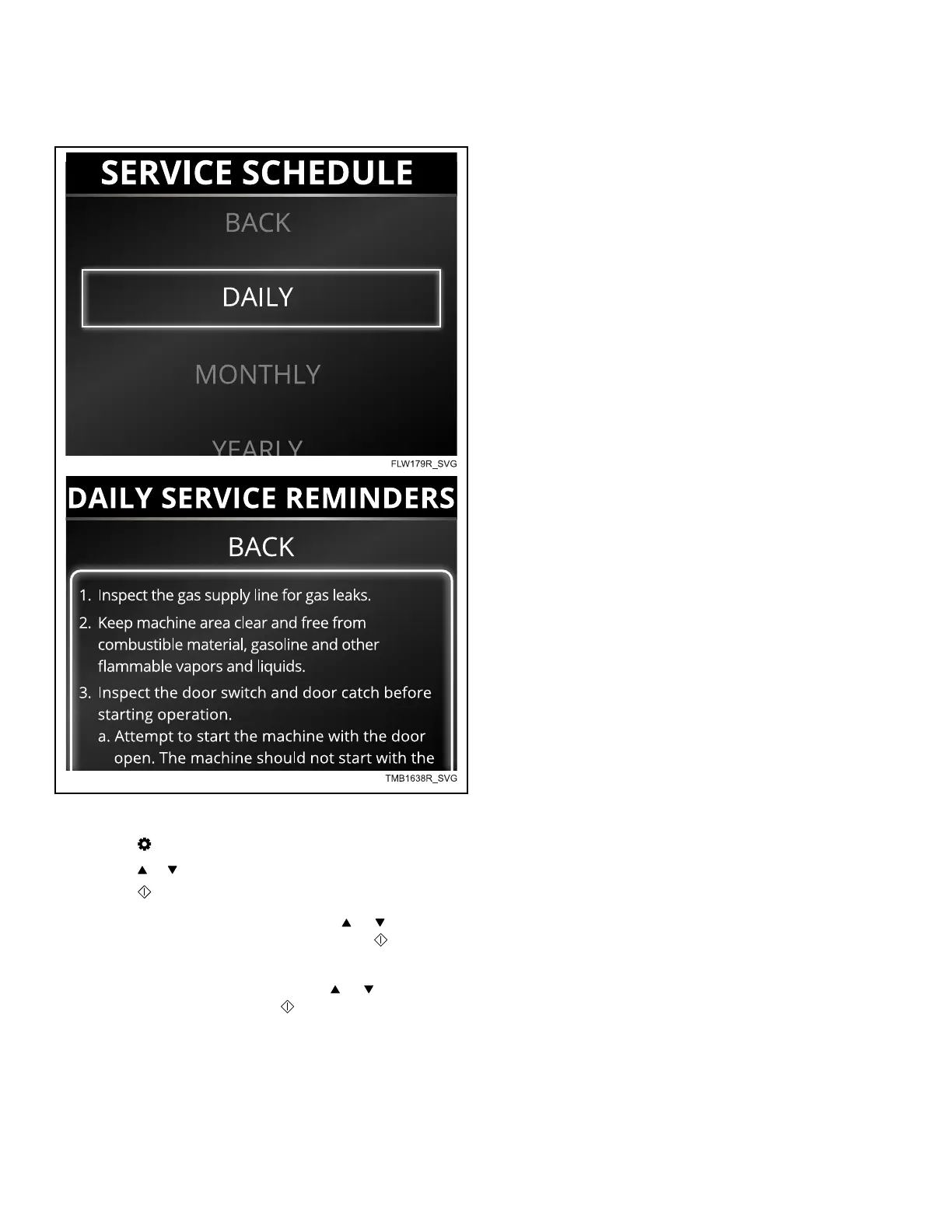 Alliance Laundry Systems UT050N - Service Schedule Menu; DAILY SERVICE REMINDERS