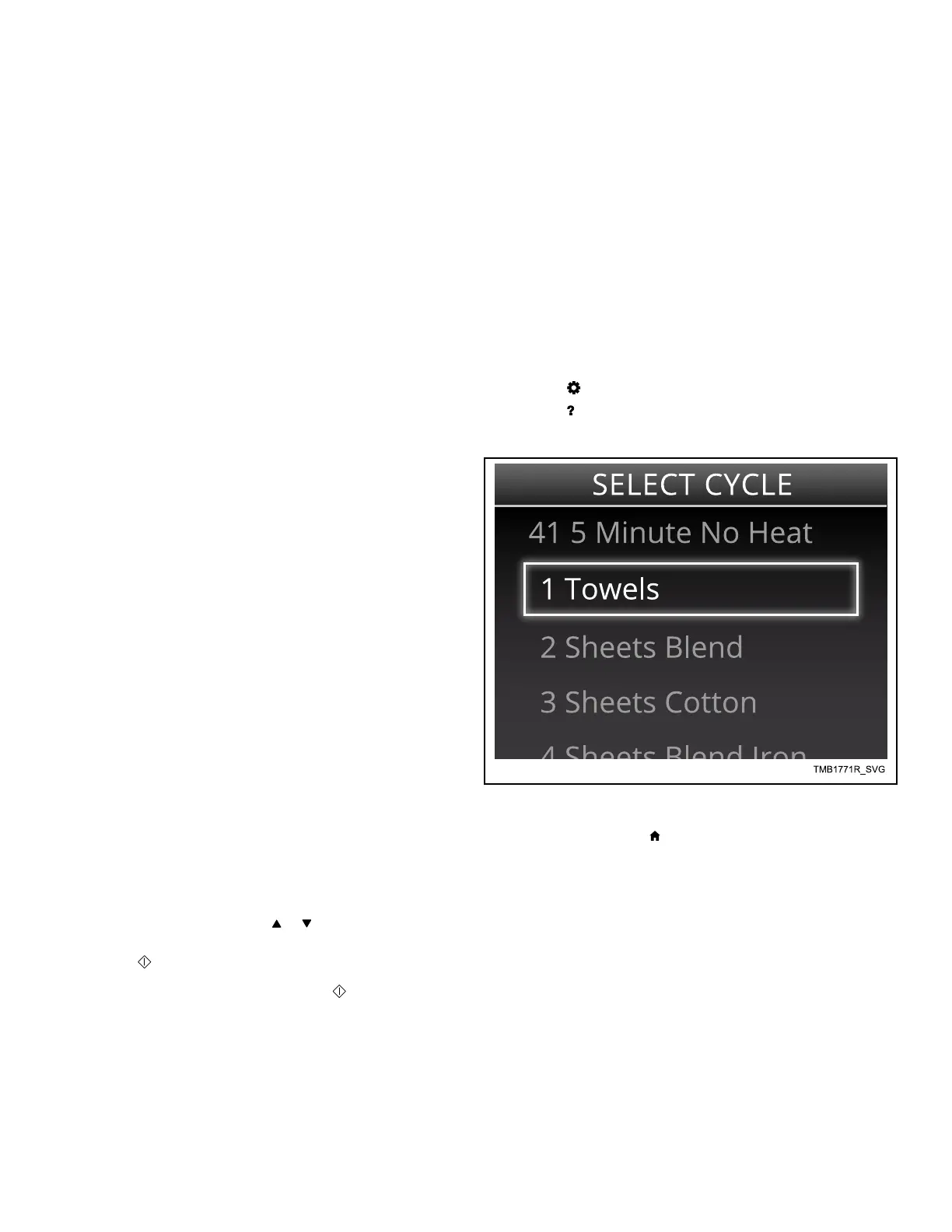 through the cycle list in the Cycle Selection Menu.