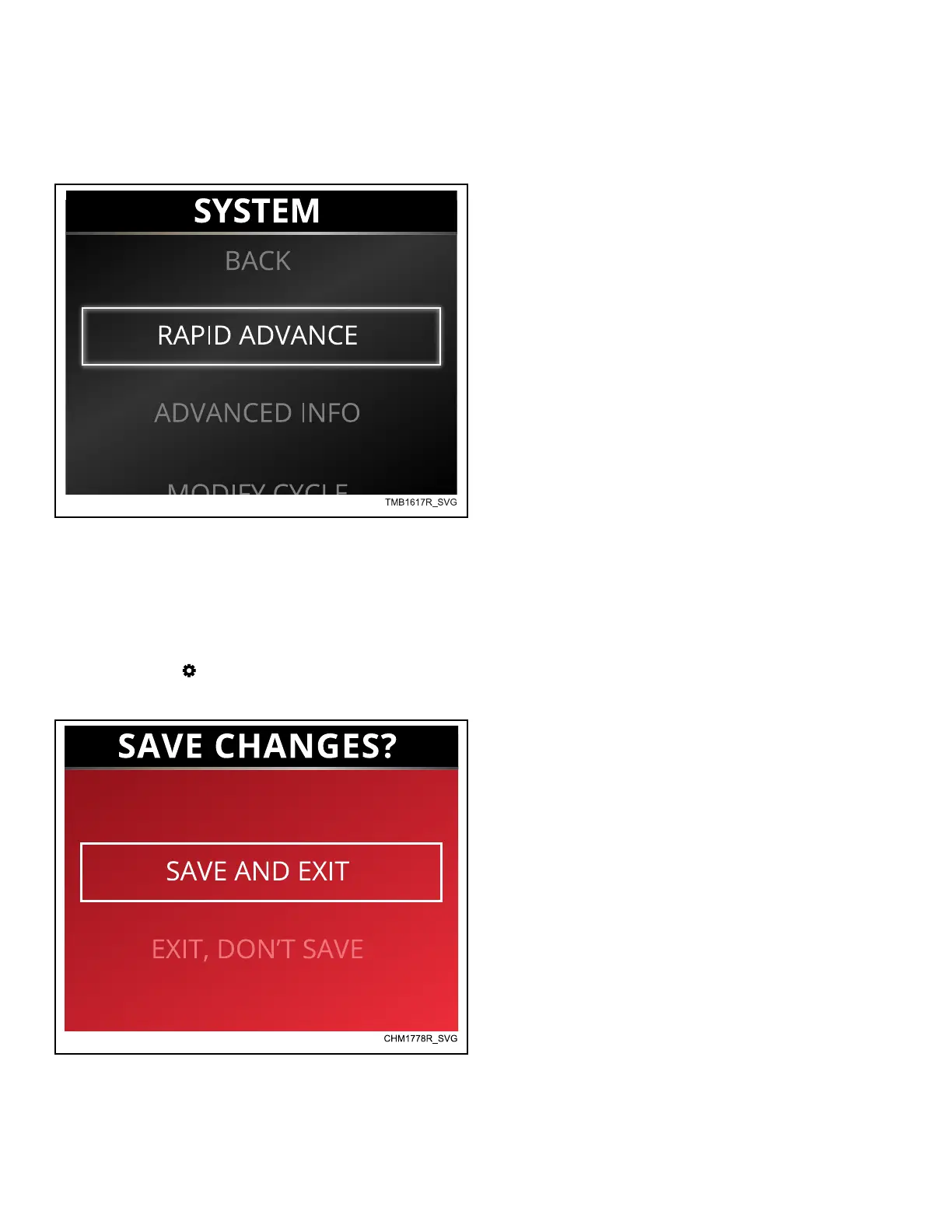 The System Menu allows the user to access Rapid Advance (Rap-
