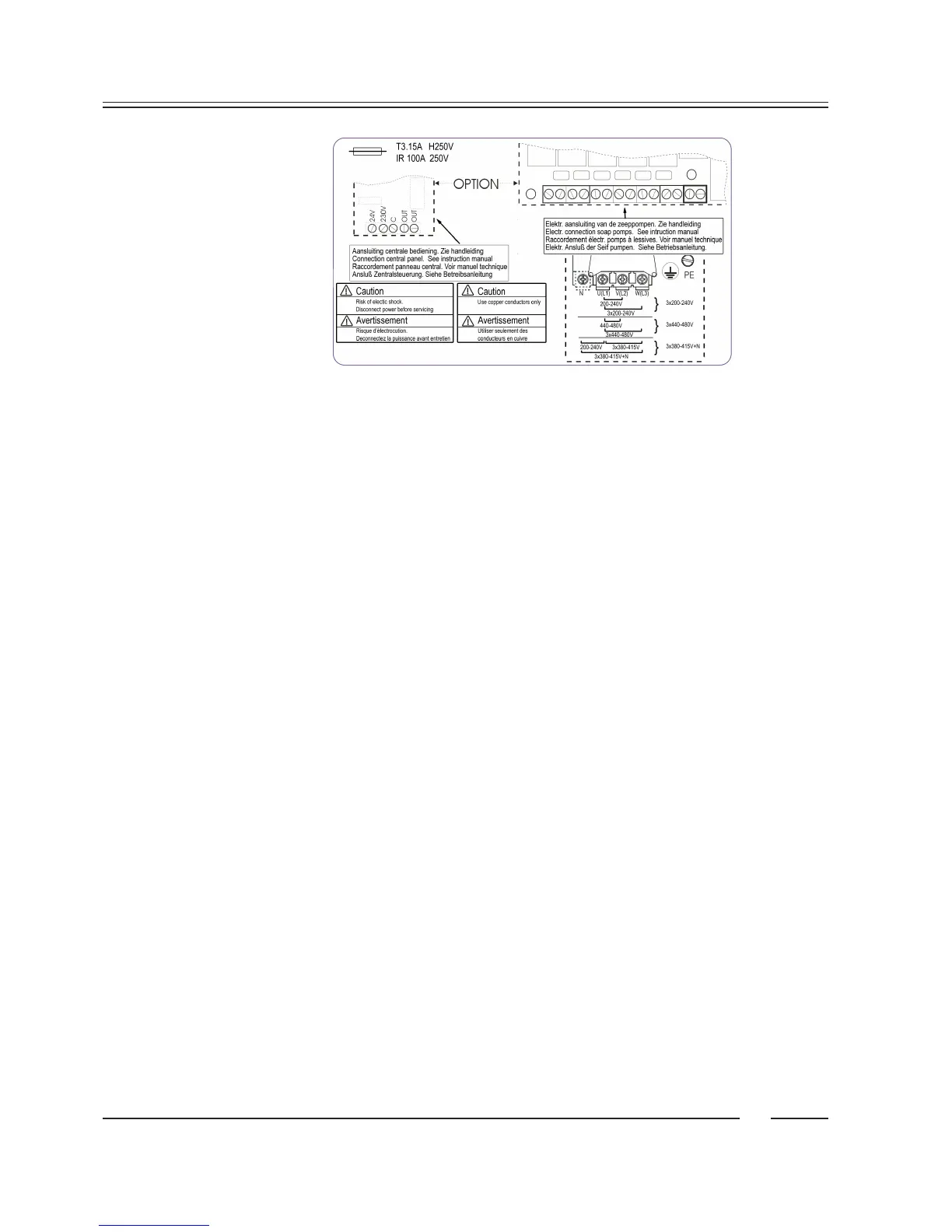 “protective earth” symbol and the letters “PE”. Failure to connect this ground wire can lead to an unsafe