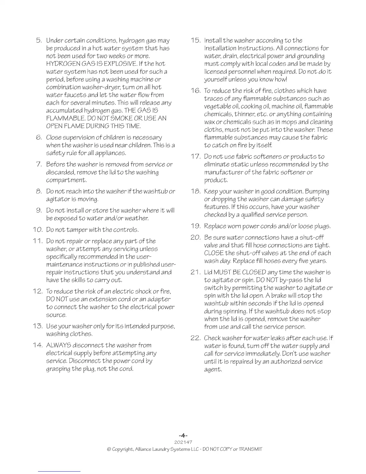 @Copyright, Alliance Laundry Systems LLC --DO NOT COPY or TRANSMIT