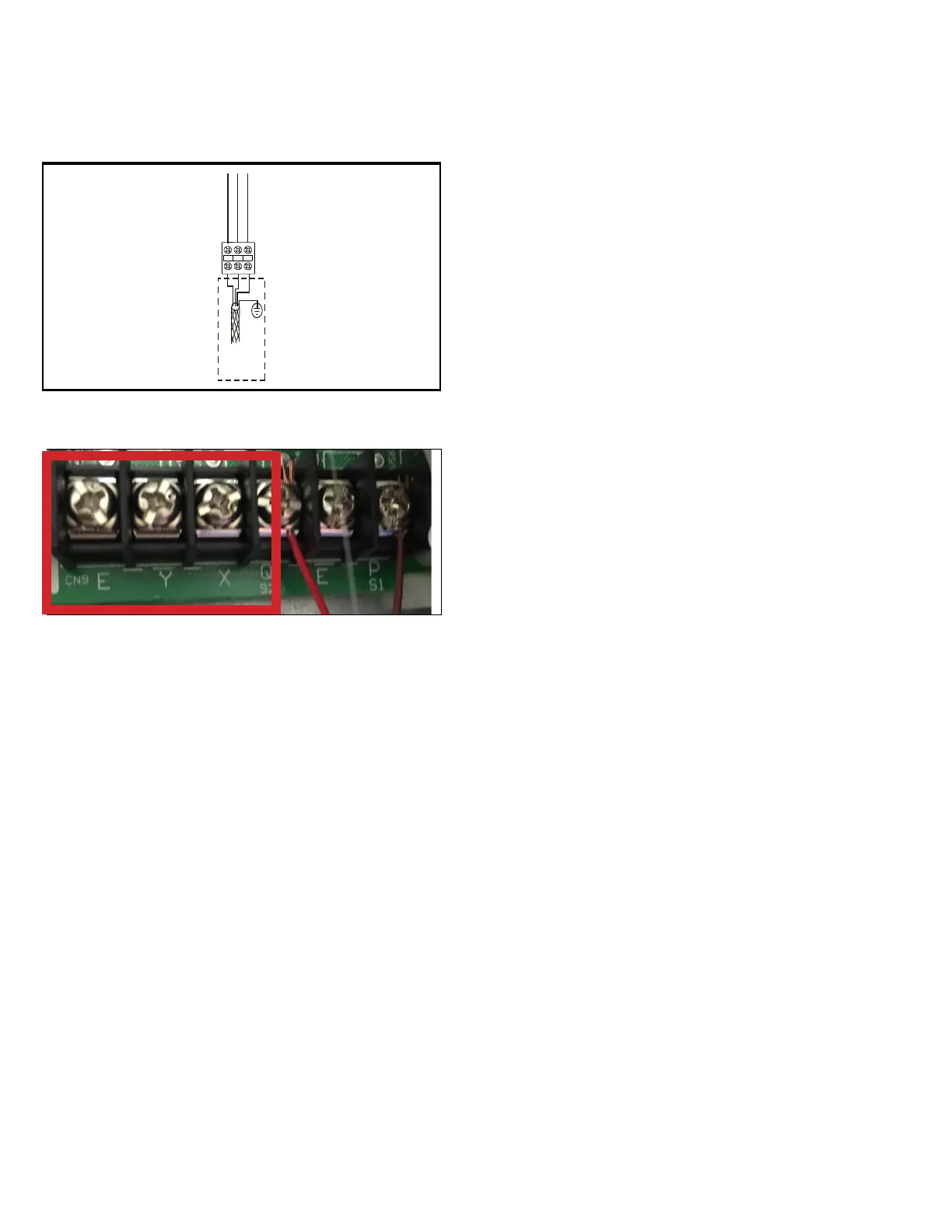 XYE terminals on the indoor unit main board.