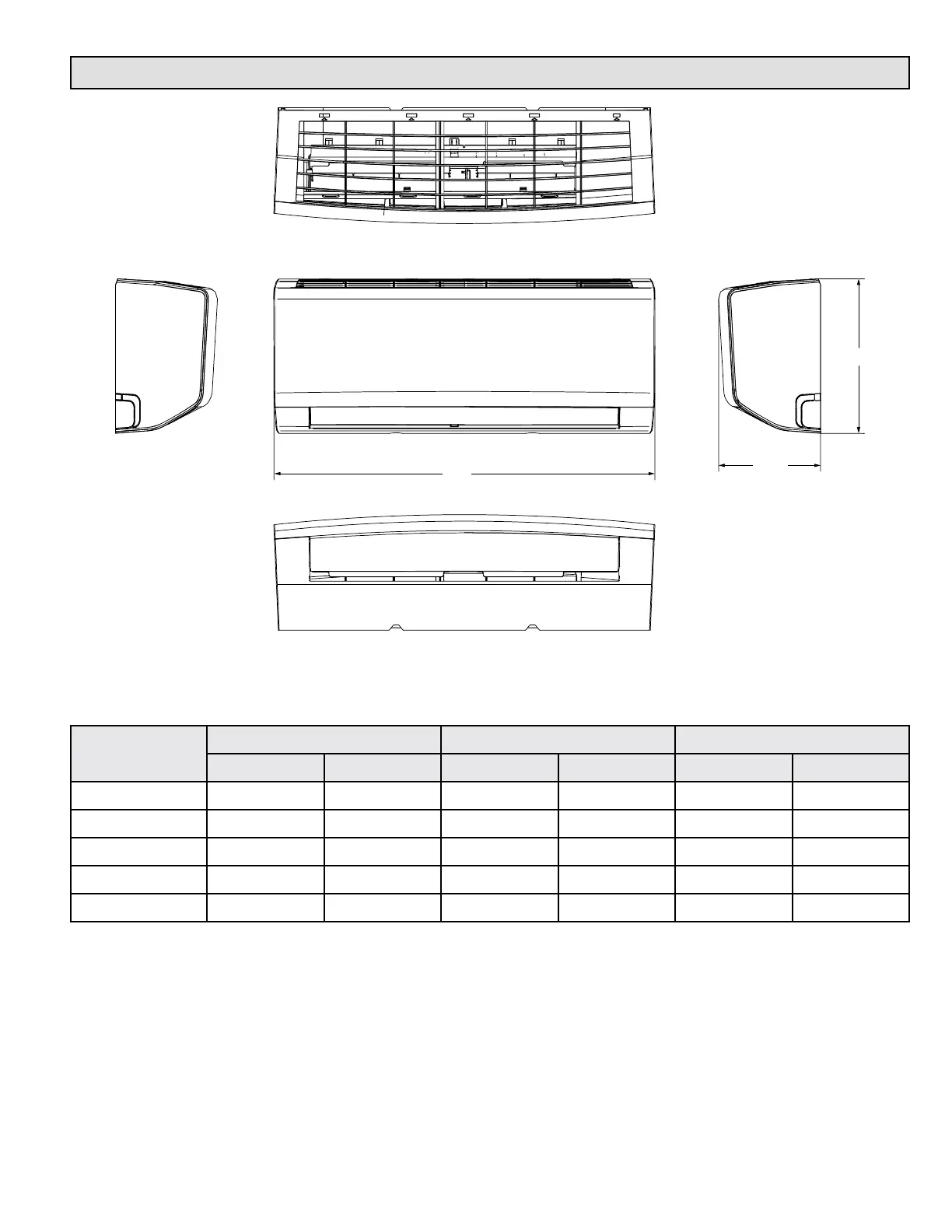 Dimensions - Wall Mounted Indoor Units - Inches (MM)