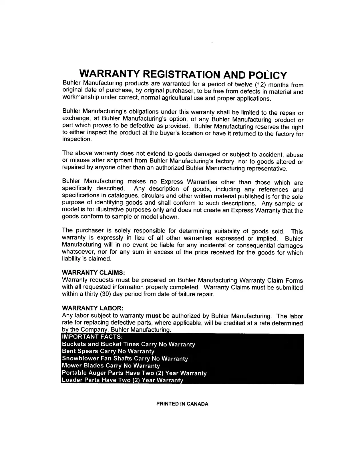Allied 595 - Warranty Registration and Policy