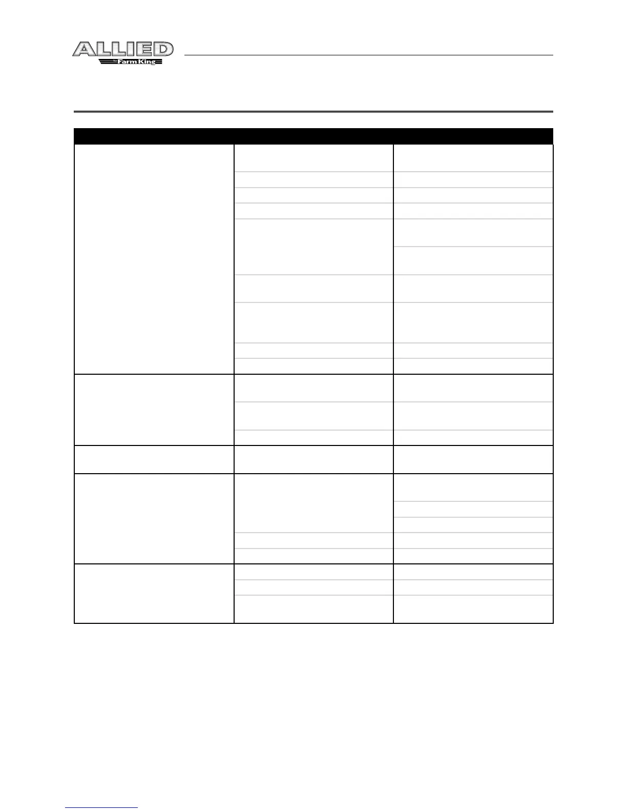 Problem Possible Cause Remedy