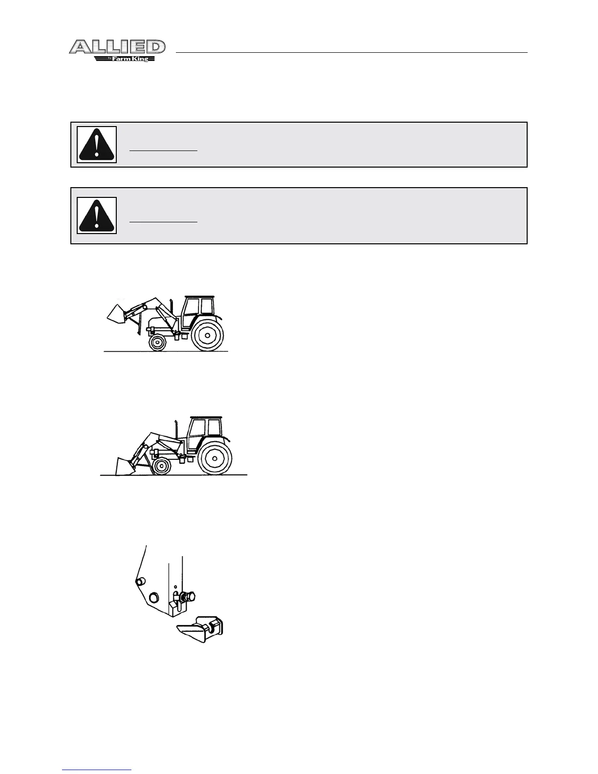 2. Lower the loader until the stand tubes are firmly on the ground and then dump the bucket so