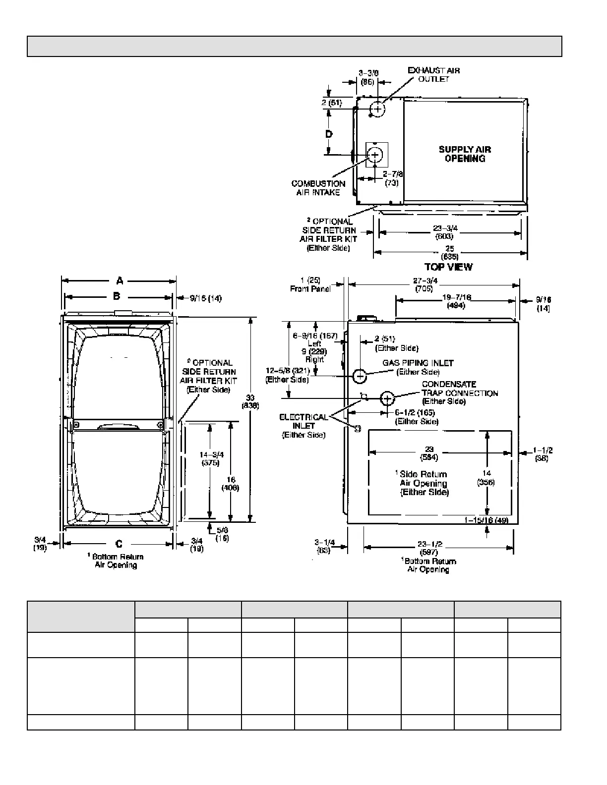 2 Optional External Side Return Air Filter kit is not for use with