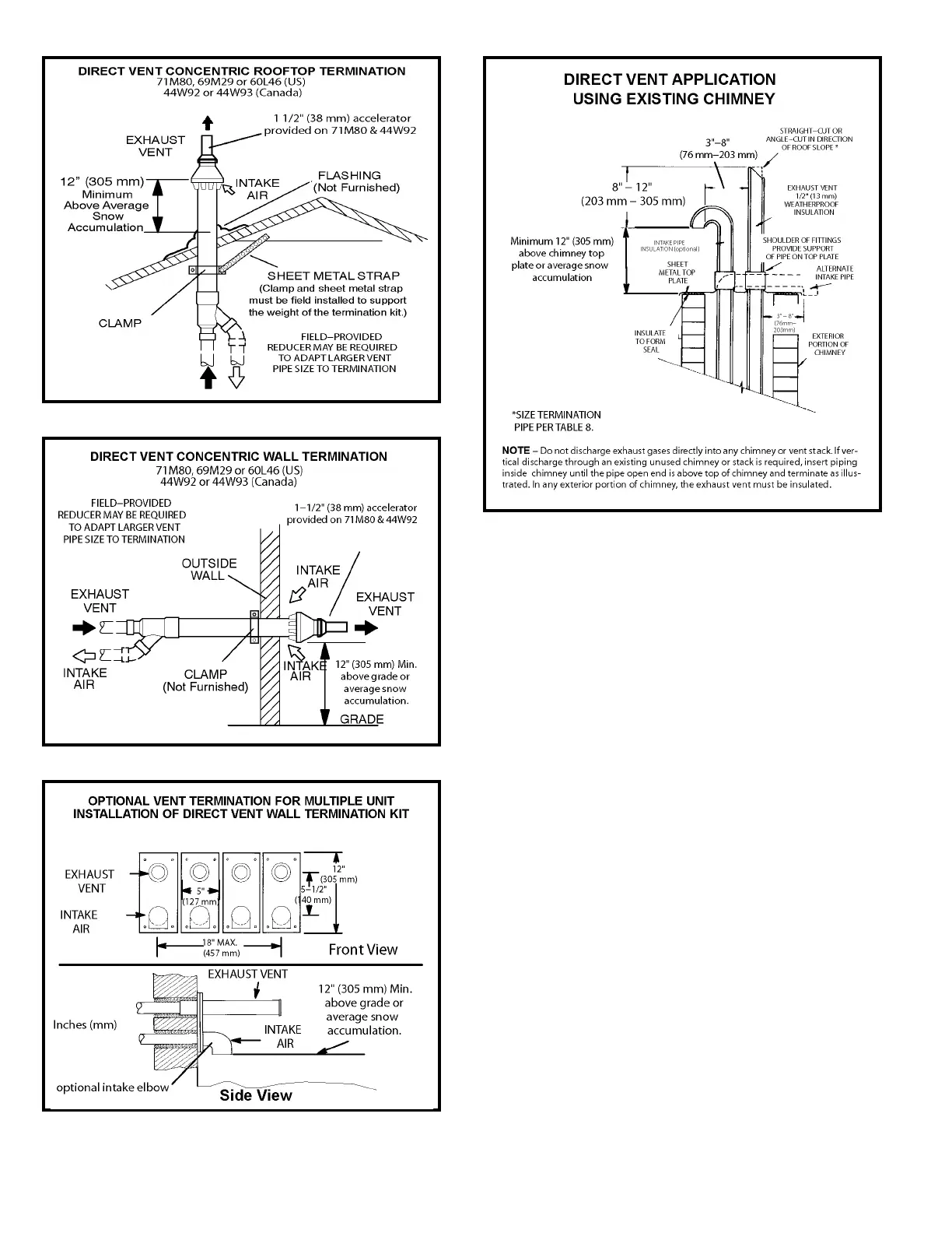 2. On eld supplied terminations for side wall exit, exhaust