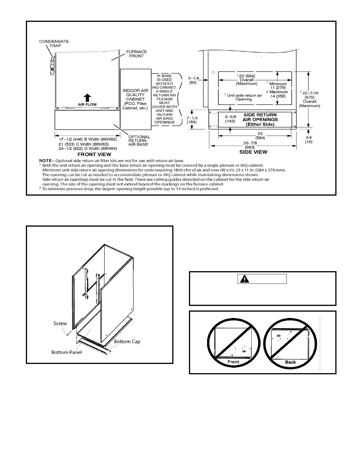 Do not install the furnace on its front or its back. See
