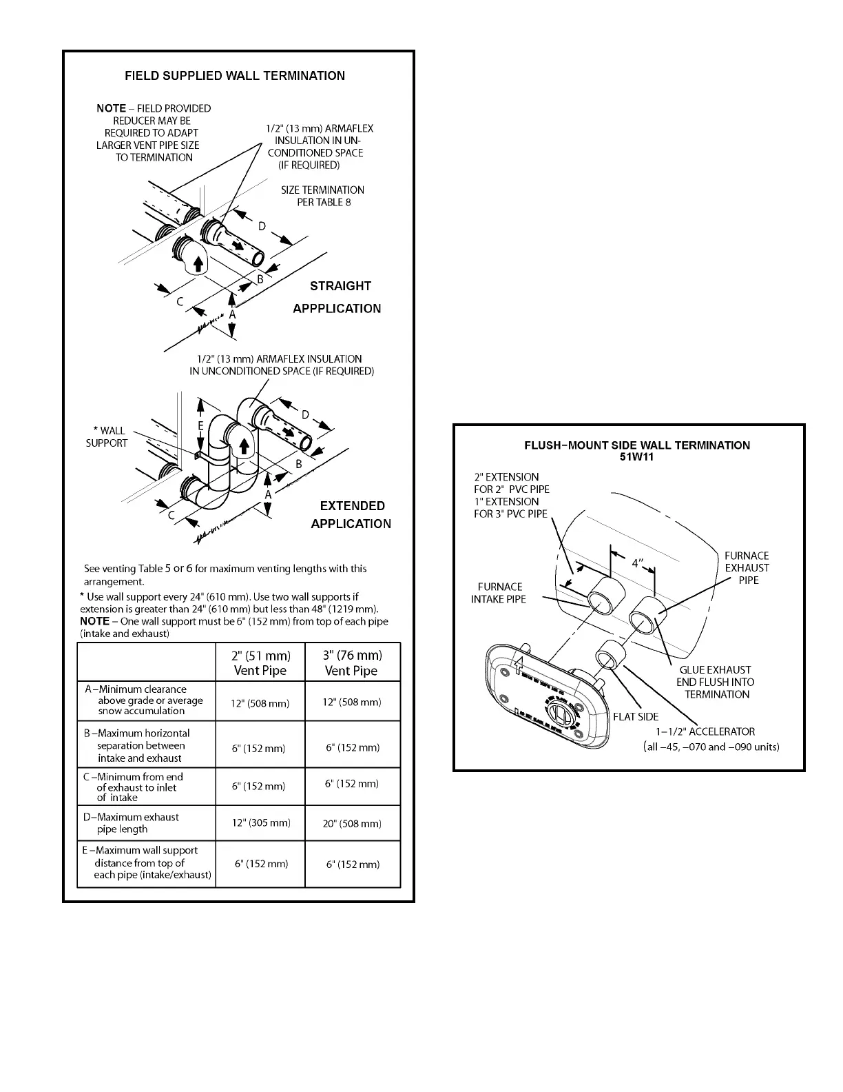 for 2” PVC and 20 inches (508 mm) for 3” (76 mm) PVC
