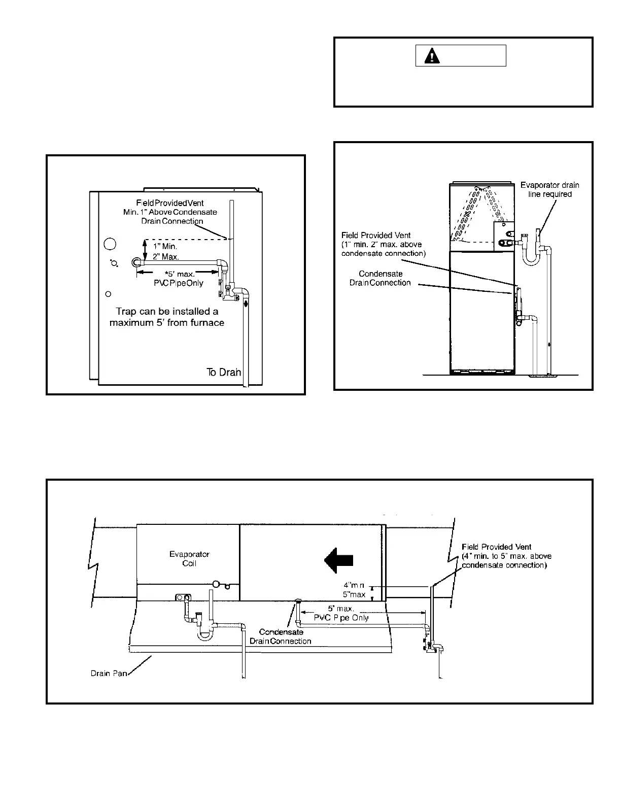 * Piping from furnace must slope down a minimum of 1/4” per ft. toward trap.