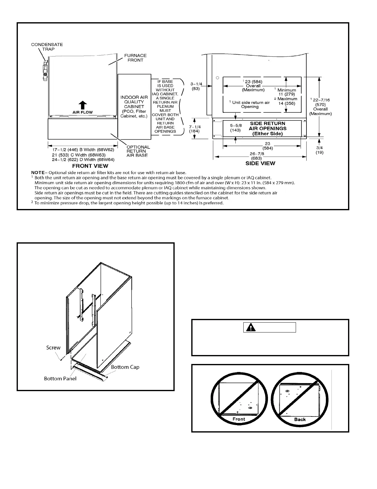 Do not install the furnace on its front or its back. See