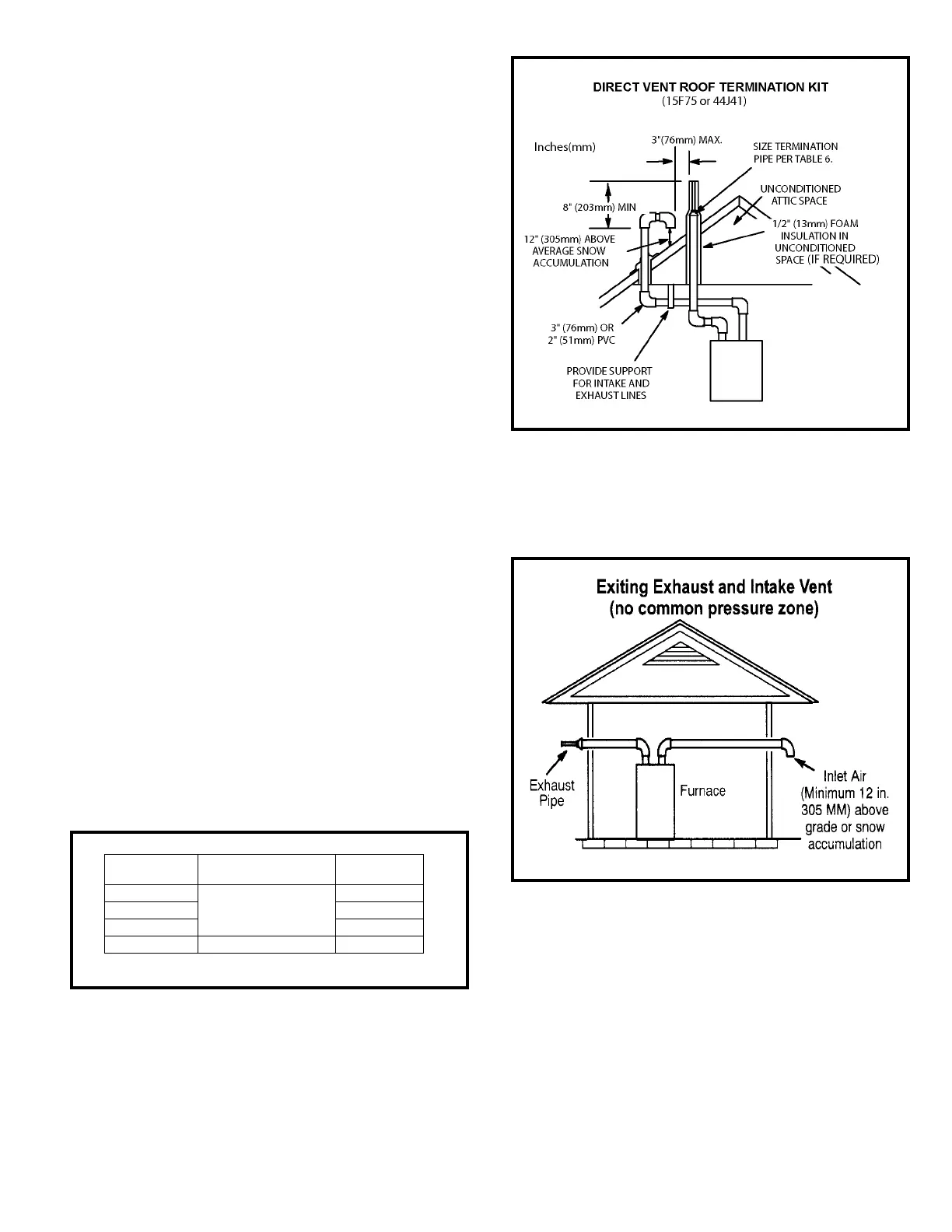 4. Exhaust piping must terminate straight out or up as