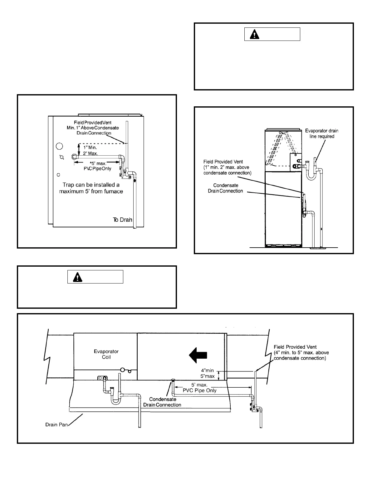 * Piping from furnace must slope down a minimum of 1/4” per ft. toward trap.