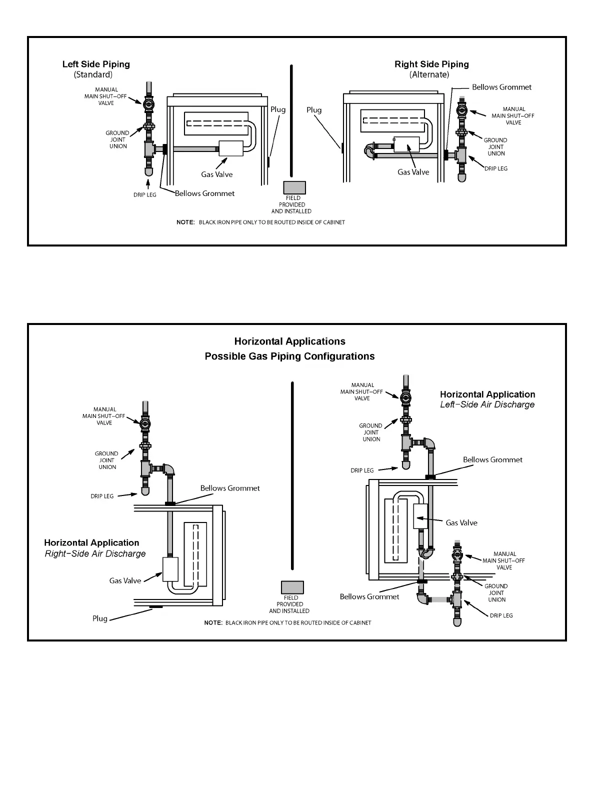 Allied A95UH1E - Horizontal Applications Possible Gas Piping Configurations; Left Side Piping (Standard); Right Side Piping (Alternate)
