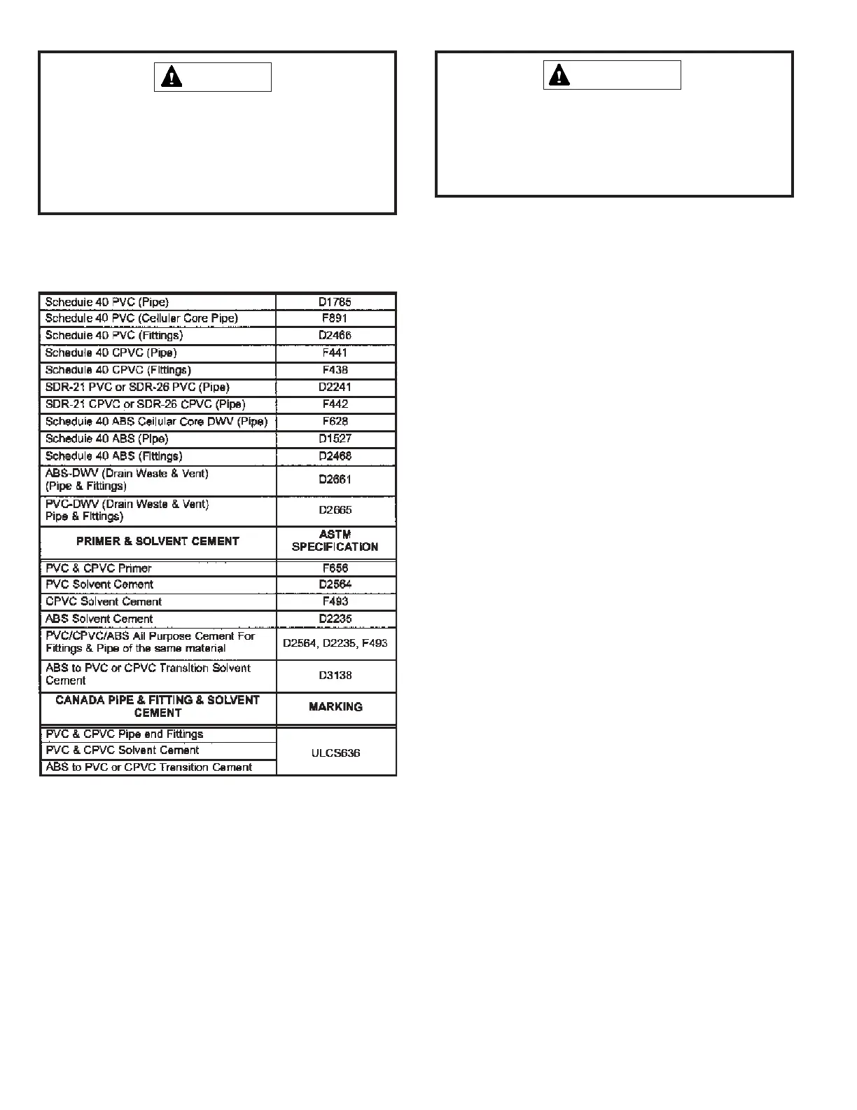 materials. Use transition solvent cement when bonding ABS