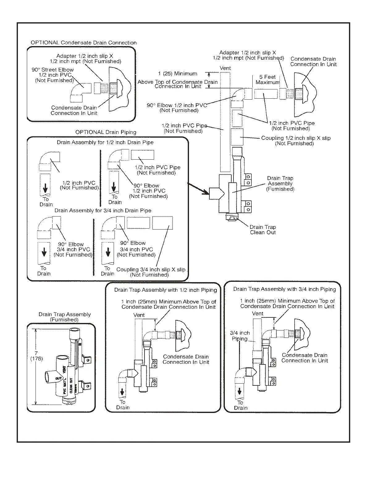 TRAP / DRAIN ASSEMBLY USING 1/2” PVC or 3/4” PVC