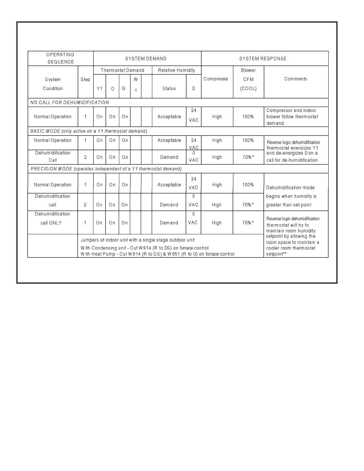 Allied A96US2V - Operating Sequence: Non-Communicating Thermostat w; Humidity Control & Single-Speed Outdoor Unit