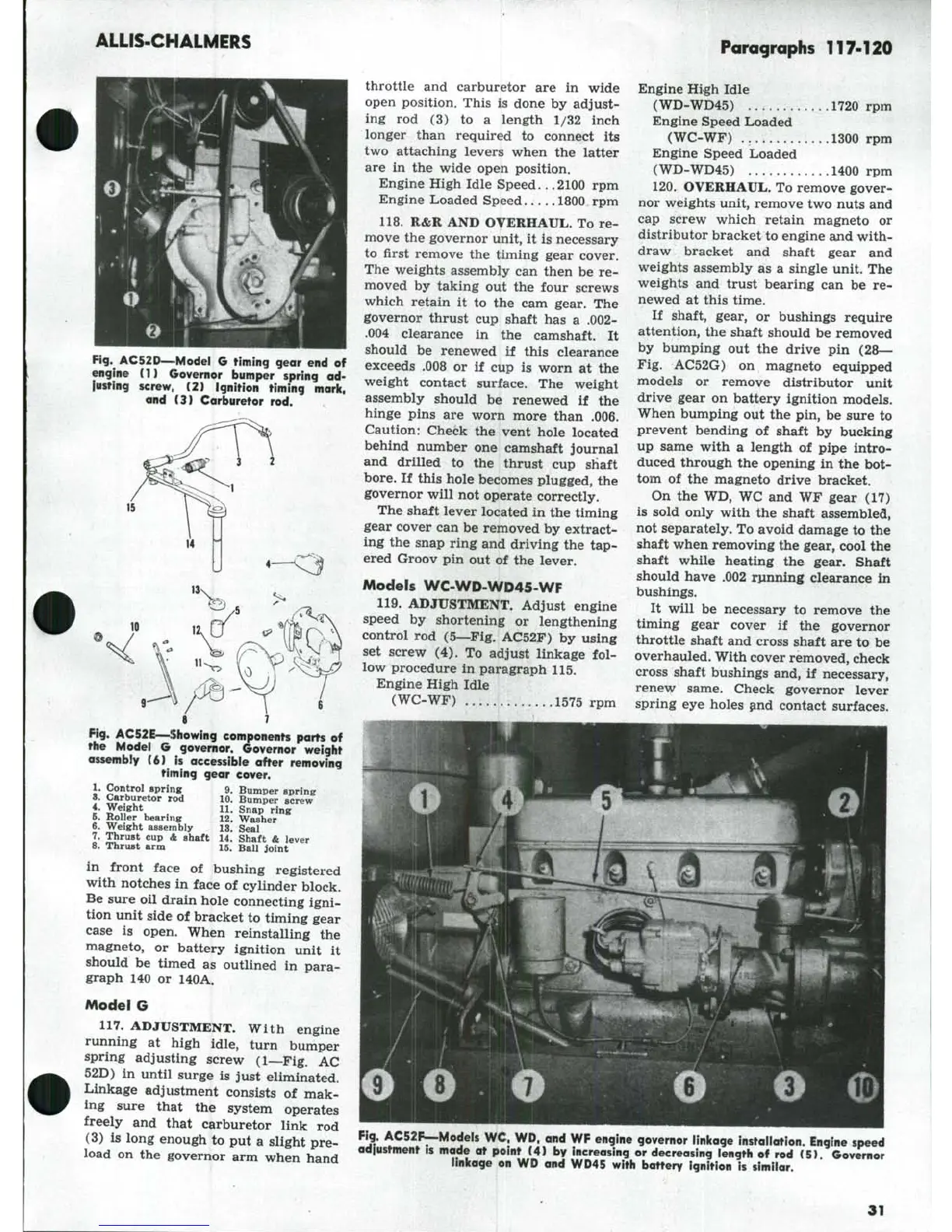 AC52F--Models WC, WD. and WF engine governor iinicage installation. Engine speed