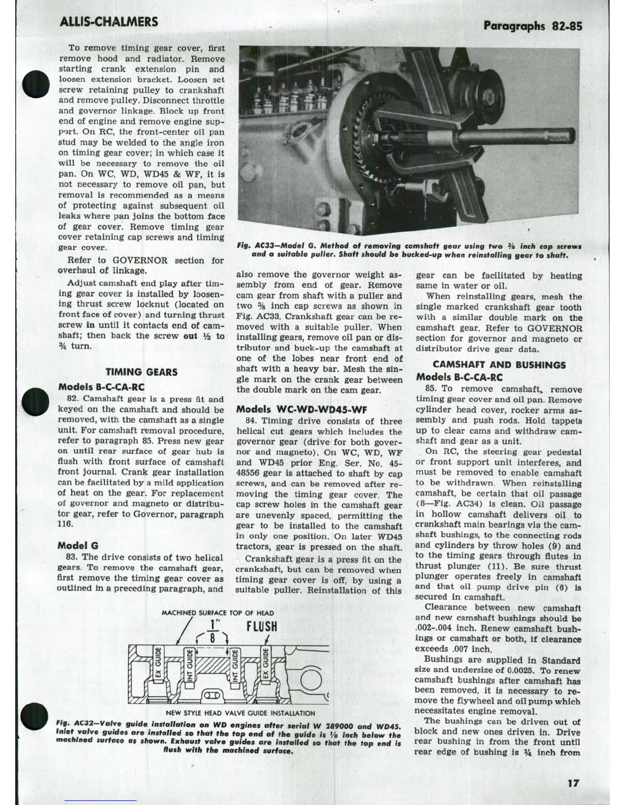 Fig, AC33—Model 6. /Method of removing camshaft gear using two Va inch cap screws