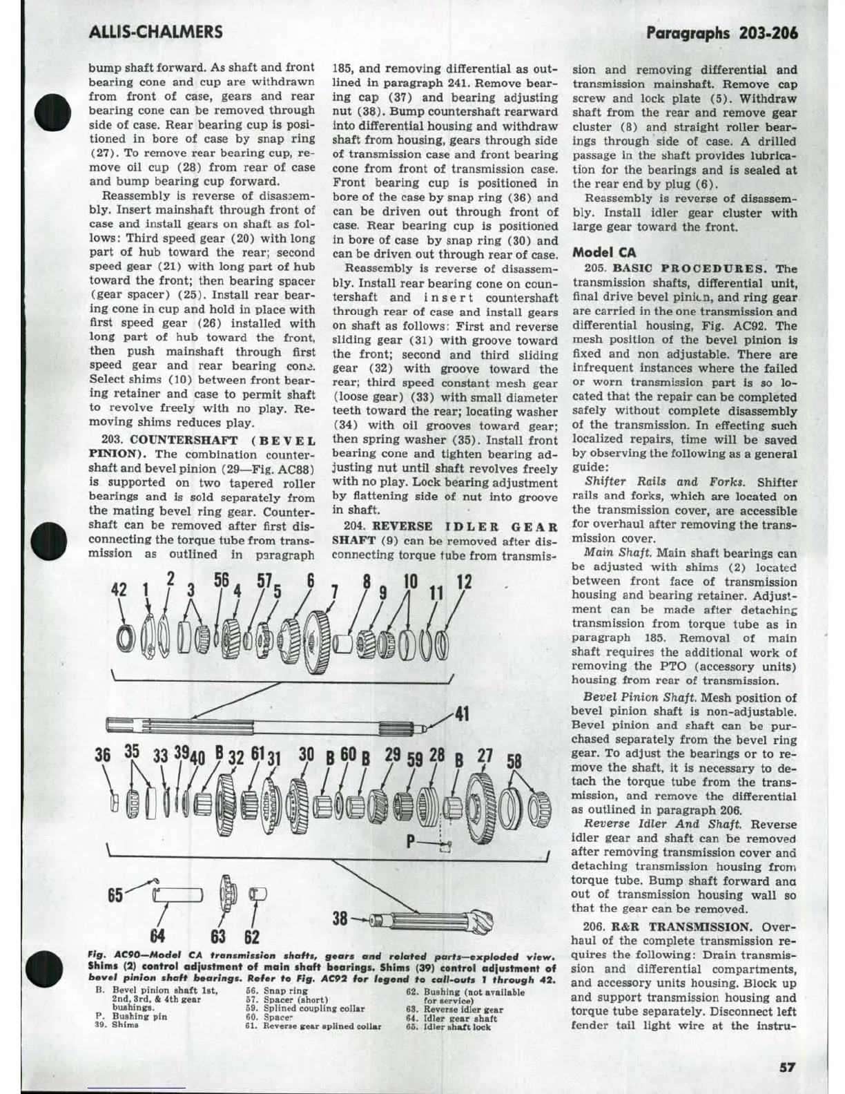Bevel pinion ahaft lst. 56. Snap ring 62. Bushing (not available