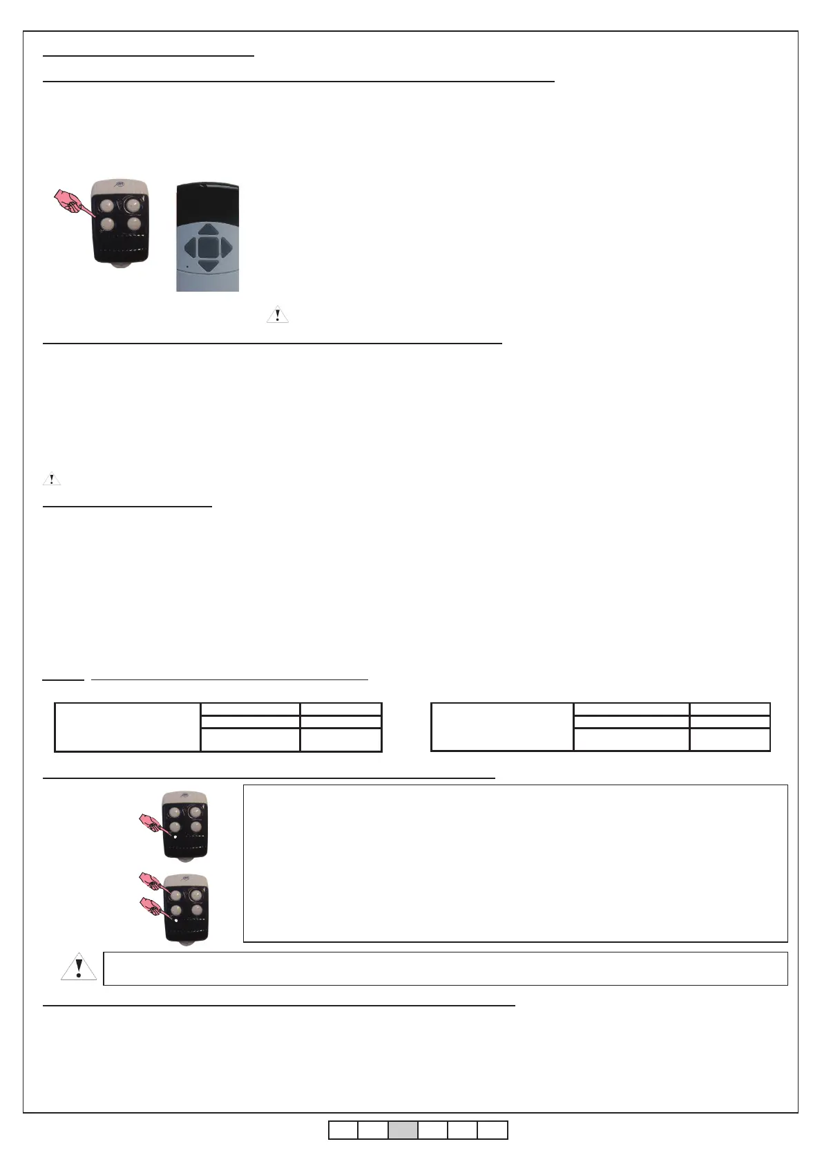 3. Appuyer sur la touche “a” ou “a1” de l’émetteur. L’armoire de commande mémorise automatiquement aussi la touche “b” ou ”b1” et la touche“c”