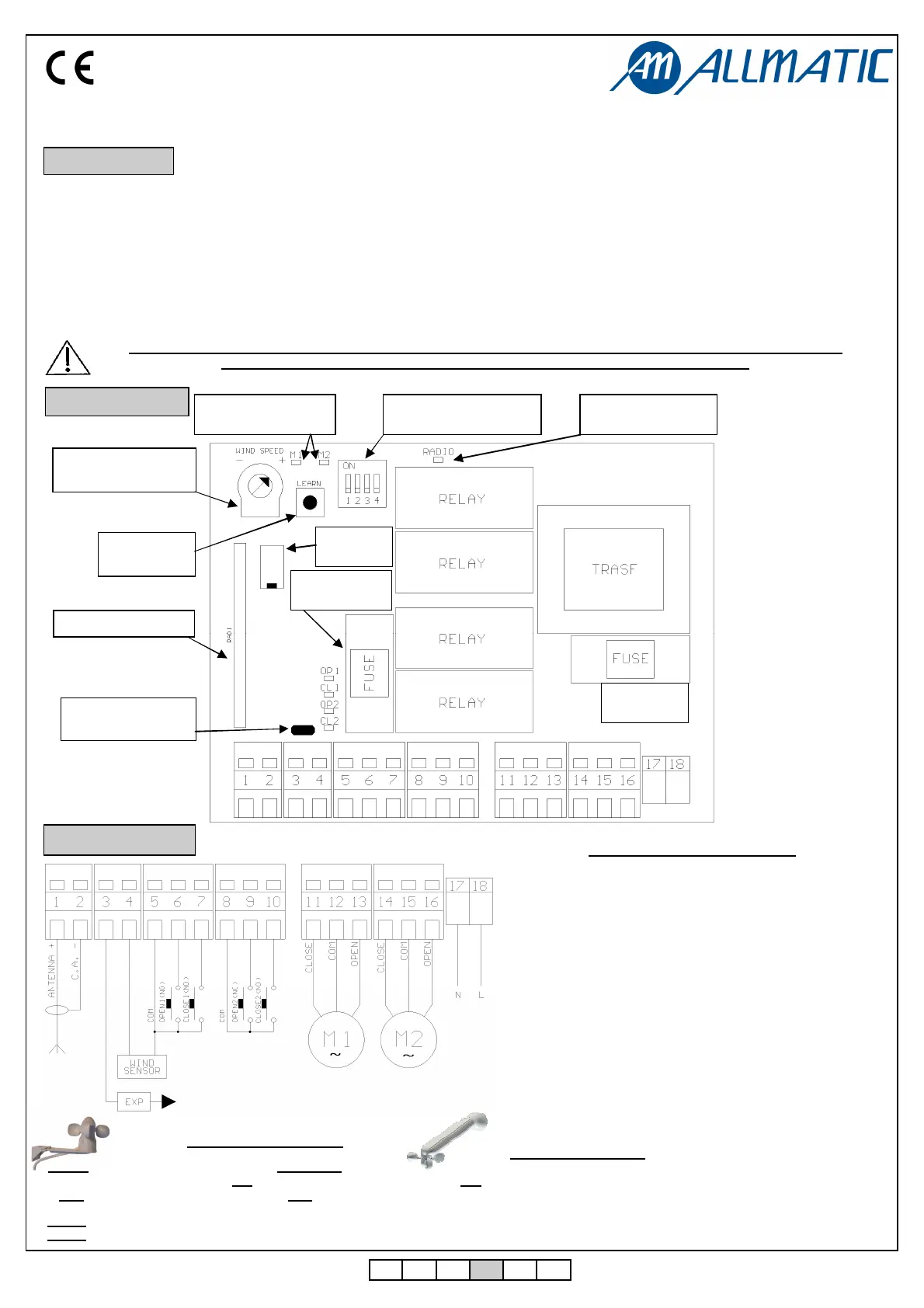 con memoria opcional) de la serie Birol® y CLARUS. Tiene una entrada para un sensor viento (serie WIN Allmatic), que permite cerrar el automatismo