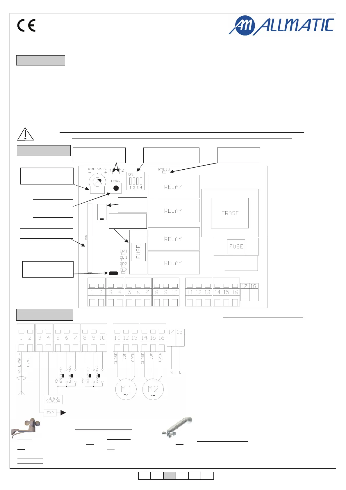 mémoire optionnelle) de la série BirolÆ et CLARUS. Il est présent une entrée pour un capteur vent (série WIN Allmatic), qui permet de fermer