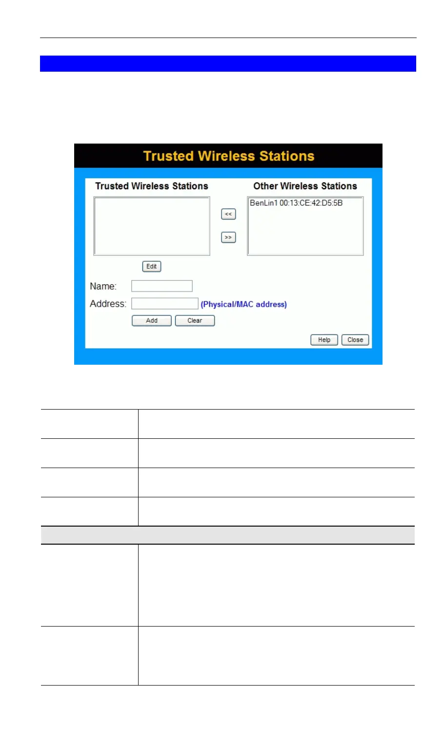 Delete a Trusted Wireless Station from the list (move to the "Other