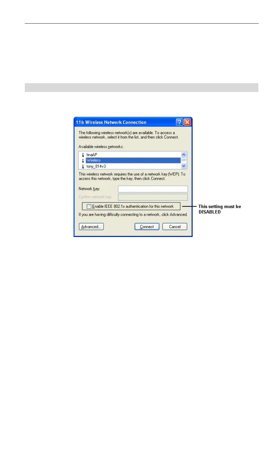 • Disable the checkbox Enable IEEE 802.1x authentication for this network.