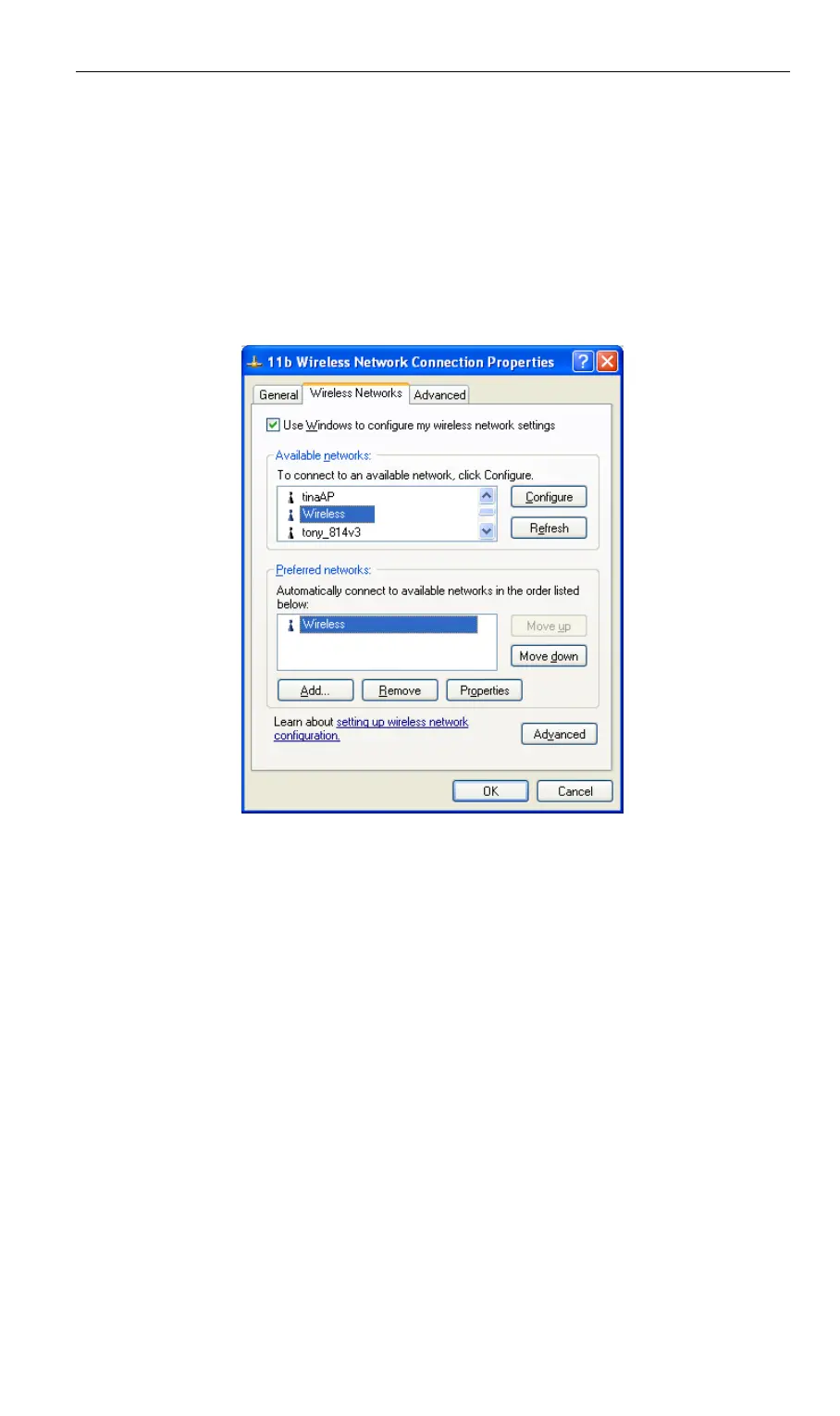 • This wireless network will now be listed in Preferred Networks on the screen below.