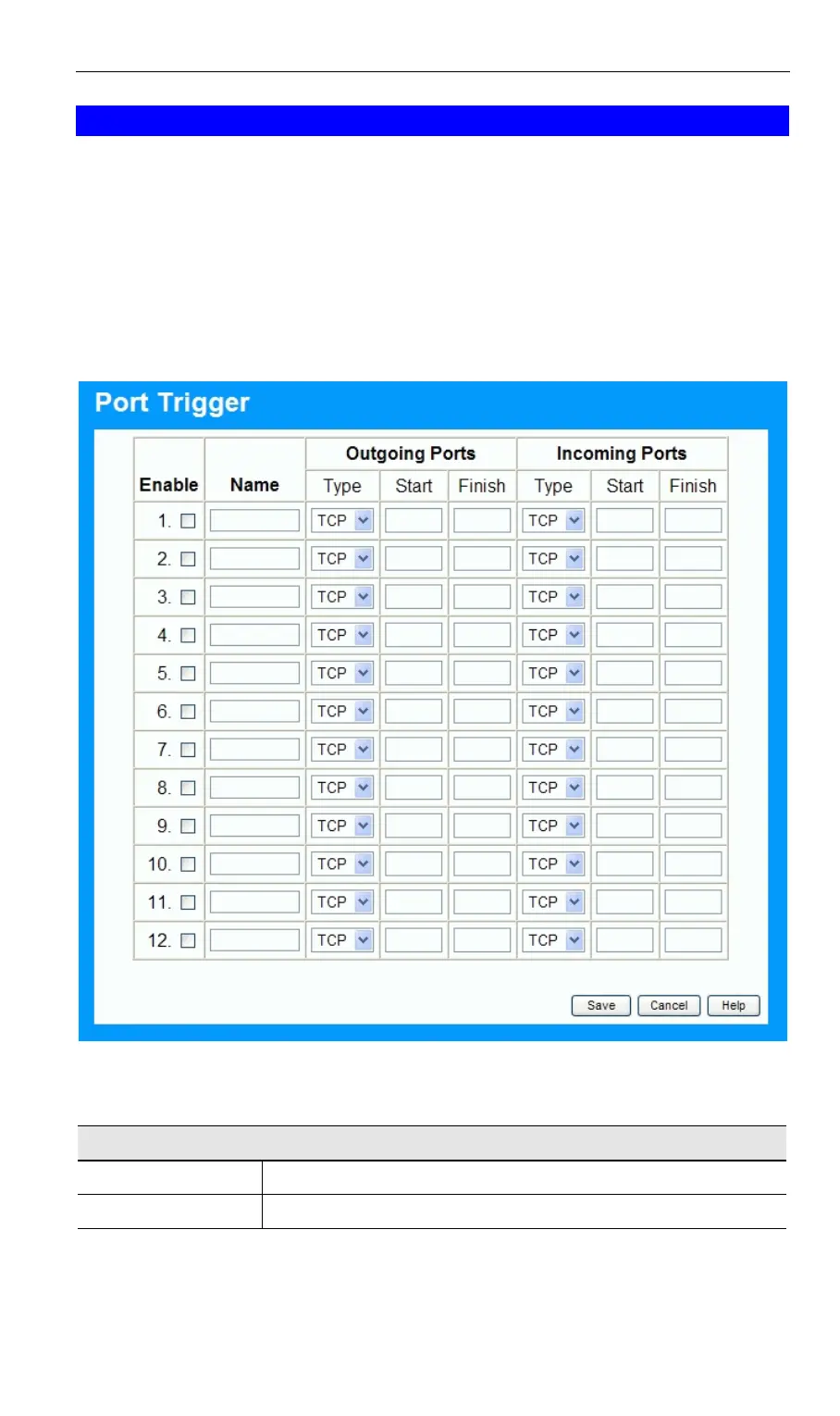 You can then define your Port Trigger. You will need detailed information about the applica-