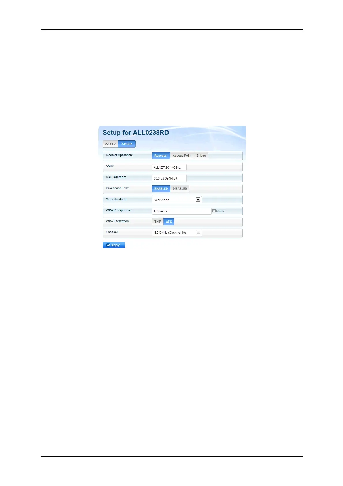 SSID broadcasted by your ALL0238RD, and define the encryption type.