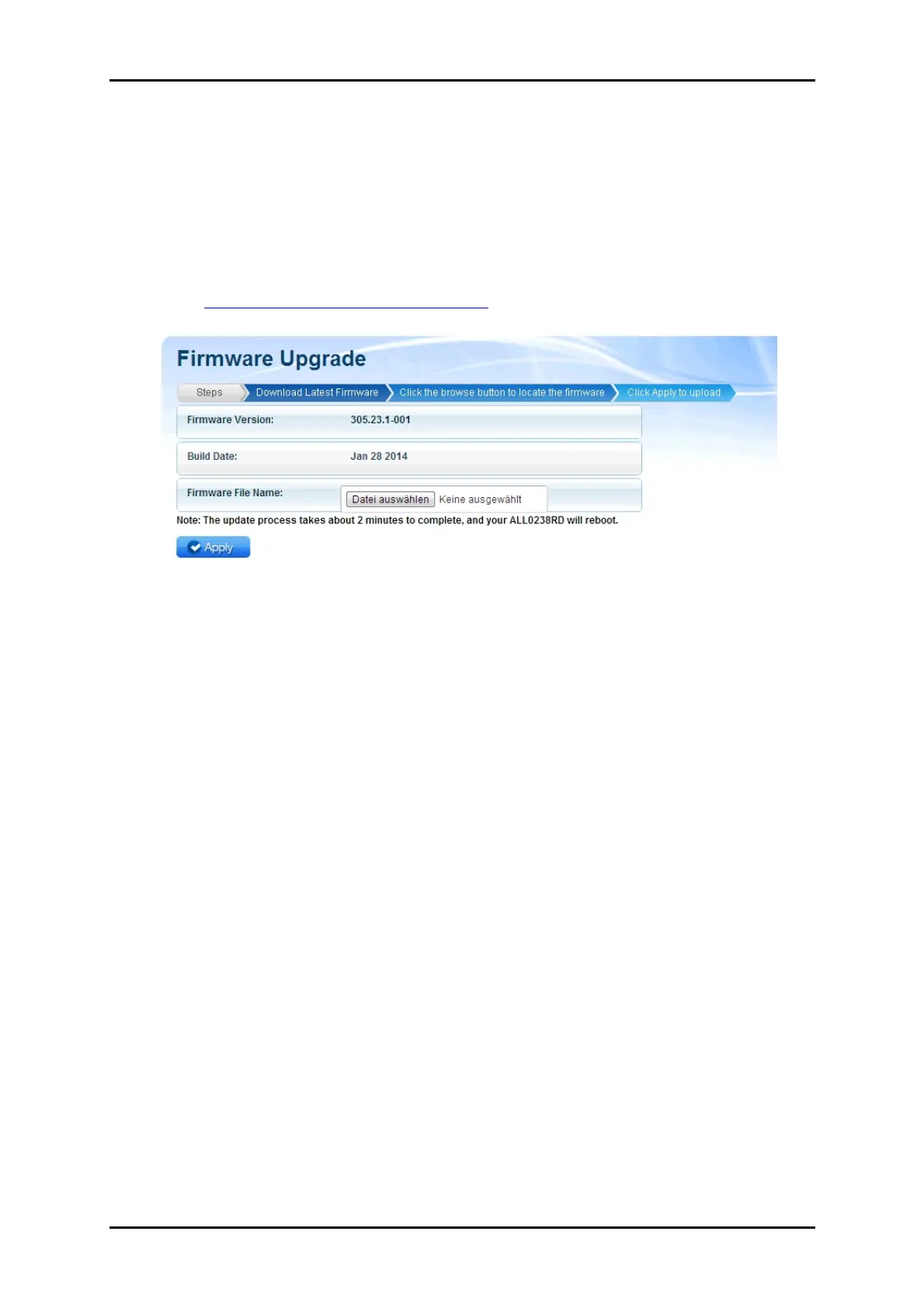 3. Click Apply to start the update. Wait for the firmware upgrade to finish