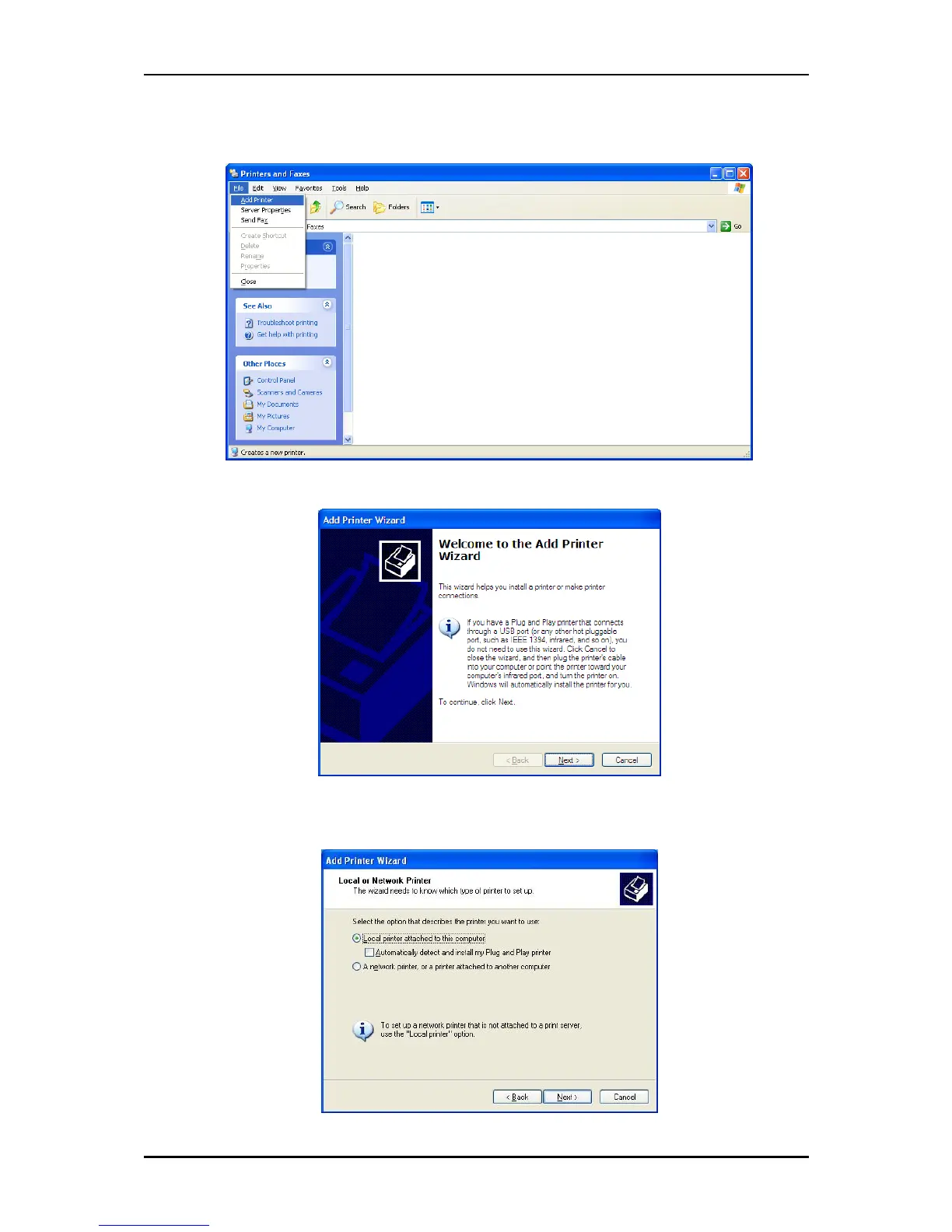 3. Click on Next on the Add Printer Wizard page.