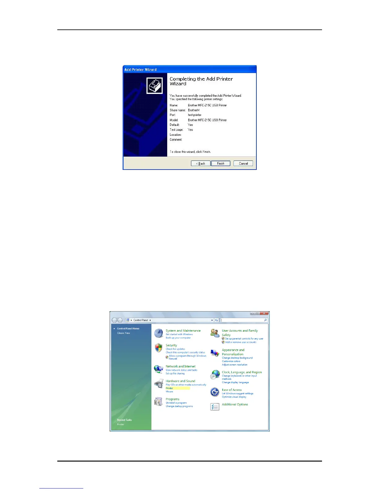 1. Open the Printers and Faxes page from Control Panel.