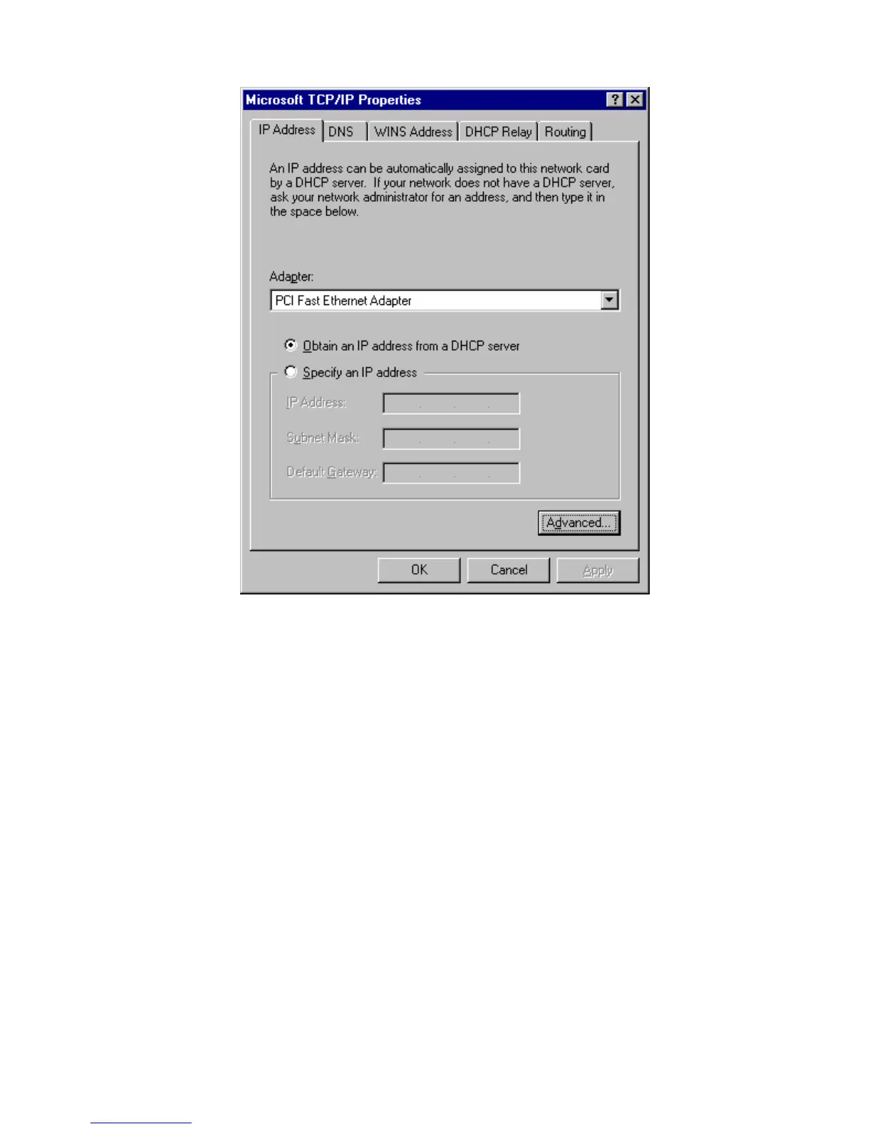 Figure 16: Windows NT4.0 - IP Address