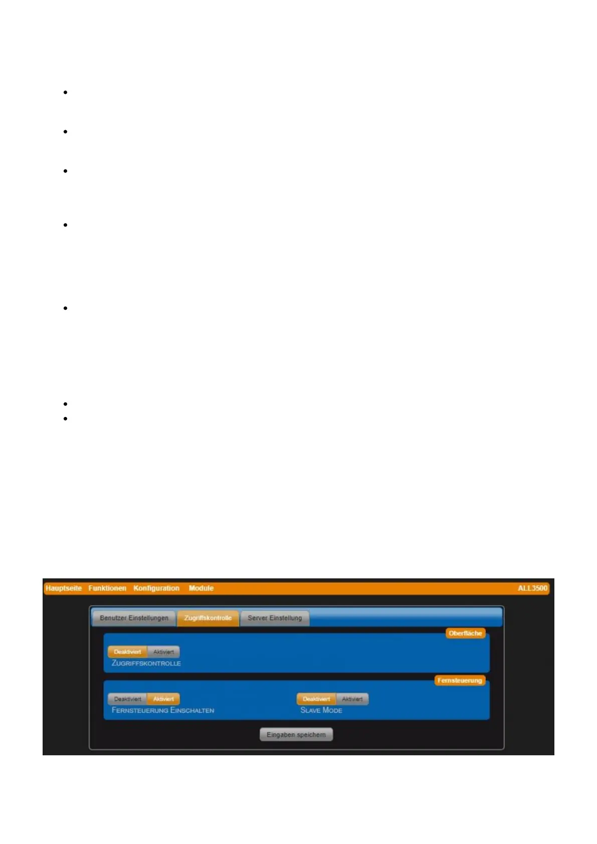 rights in the User Settings tab. To activate the access control for the interface, a user with