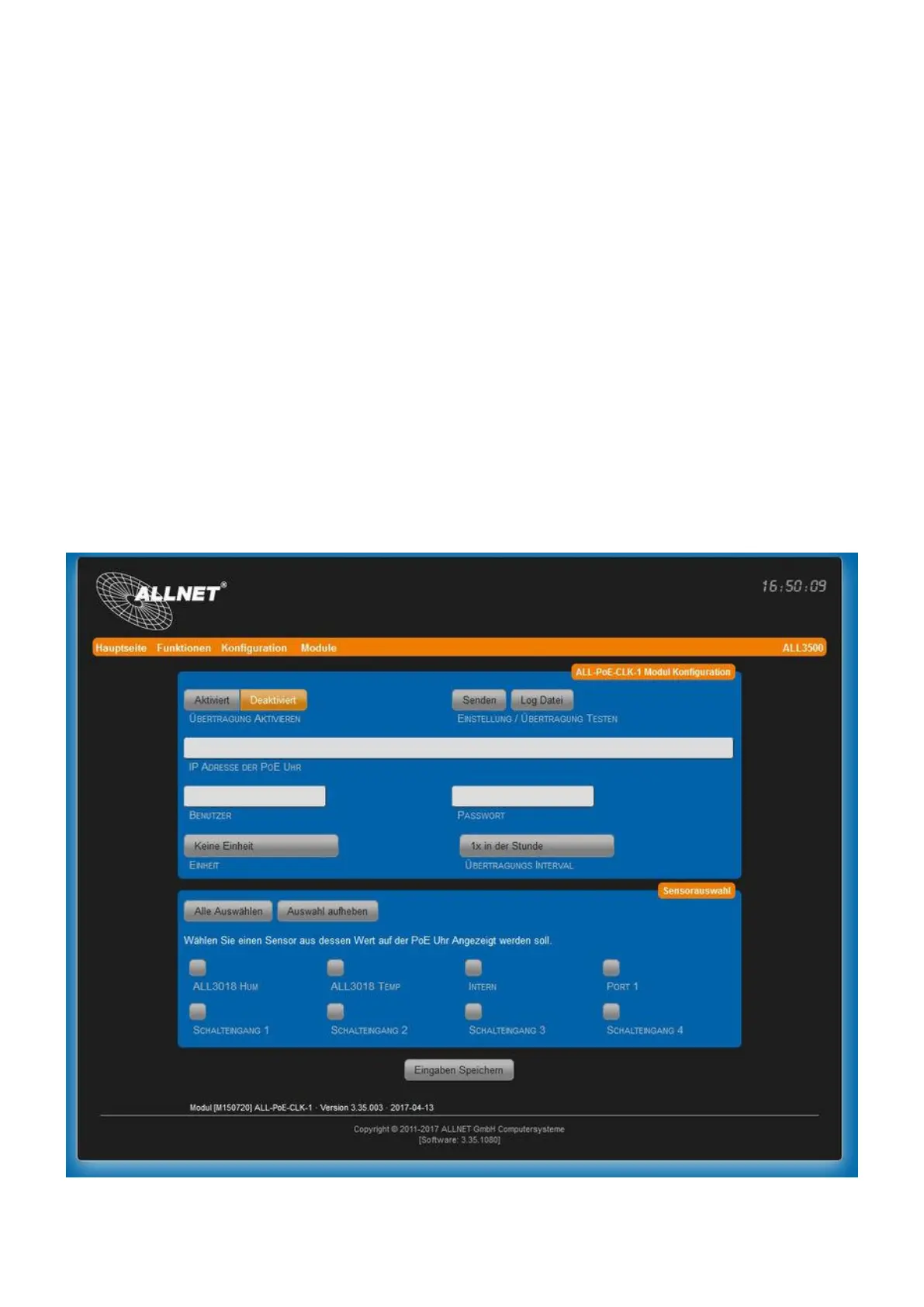 The PoE Clock module transmits the sensor values to the PoE Clock. The delivered values or the