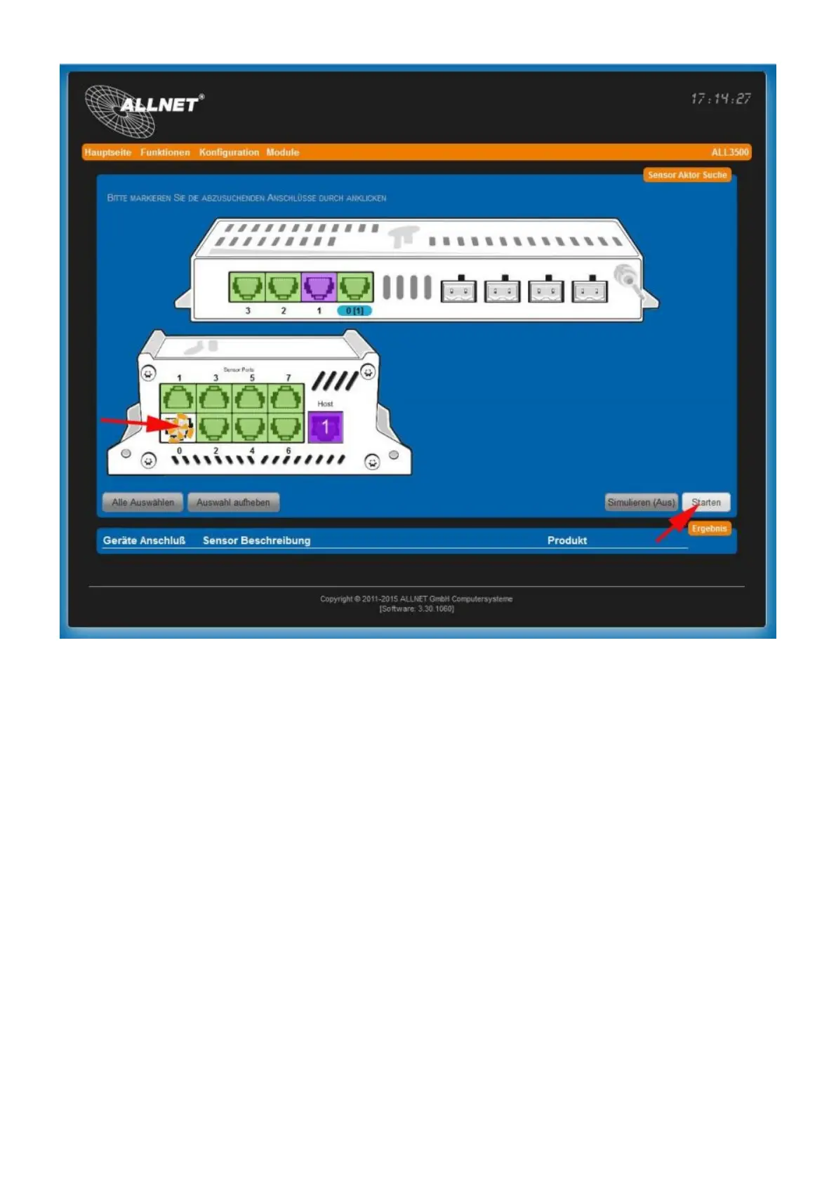 Step 5: We click again on "Start" and the search starts on all green ports.