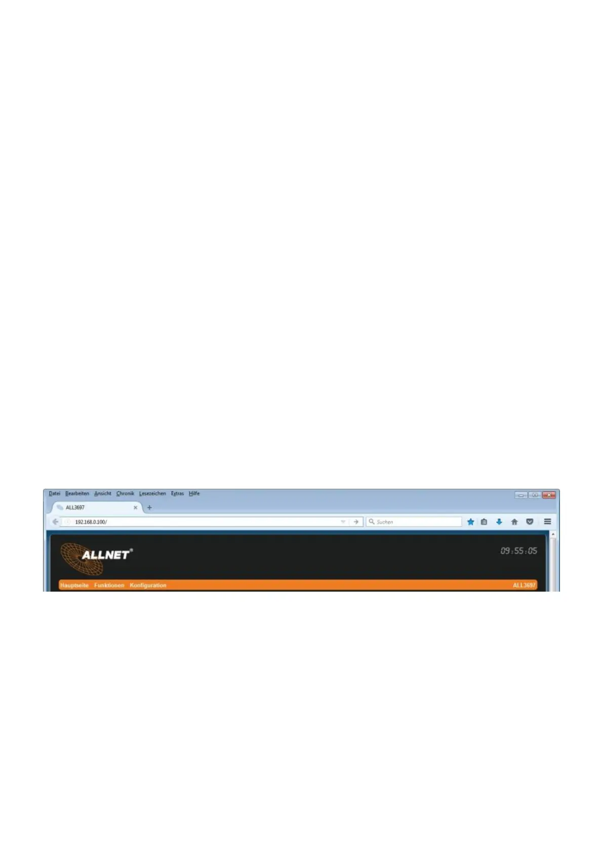 Now enter in the web browser (Internet Explorer, Firefox...) the Address 192.168.0.100, the5.