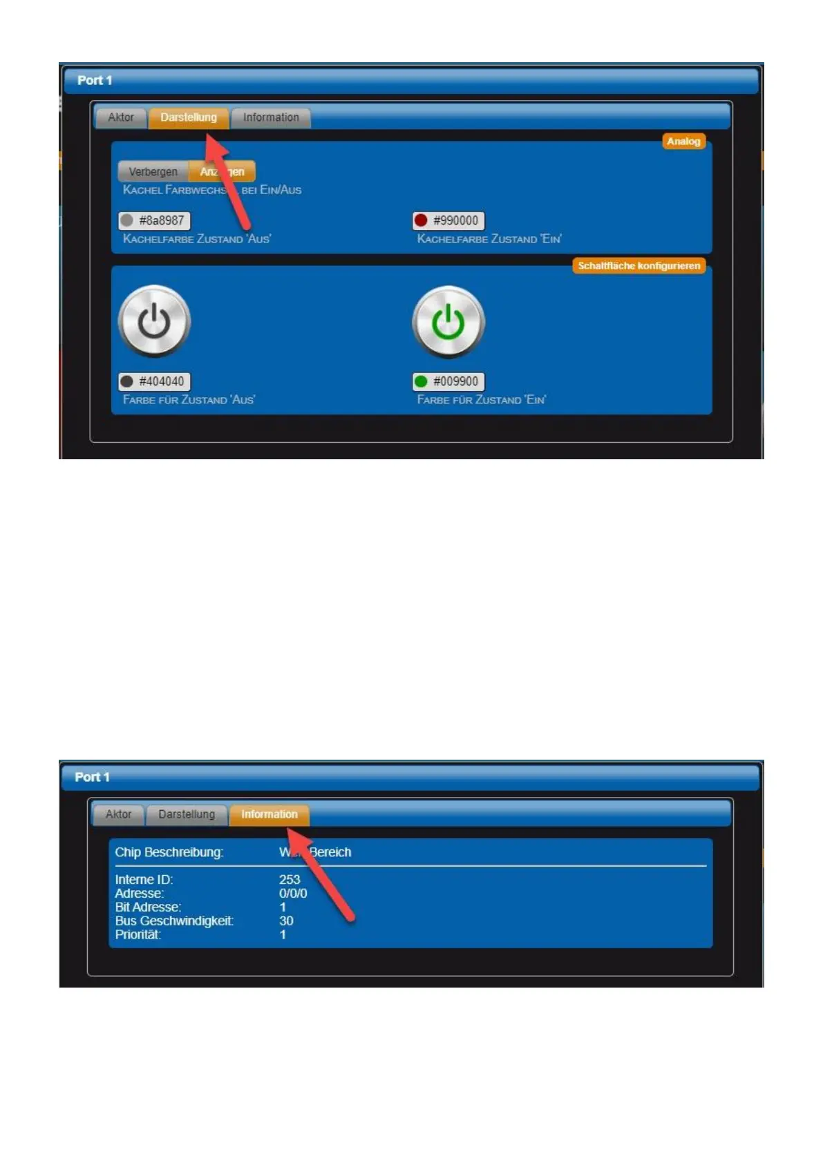 • Color for condition 'on' Set the desired color for the button with the color selector.