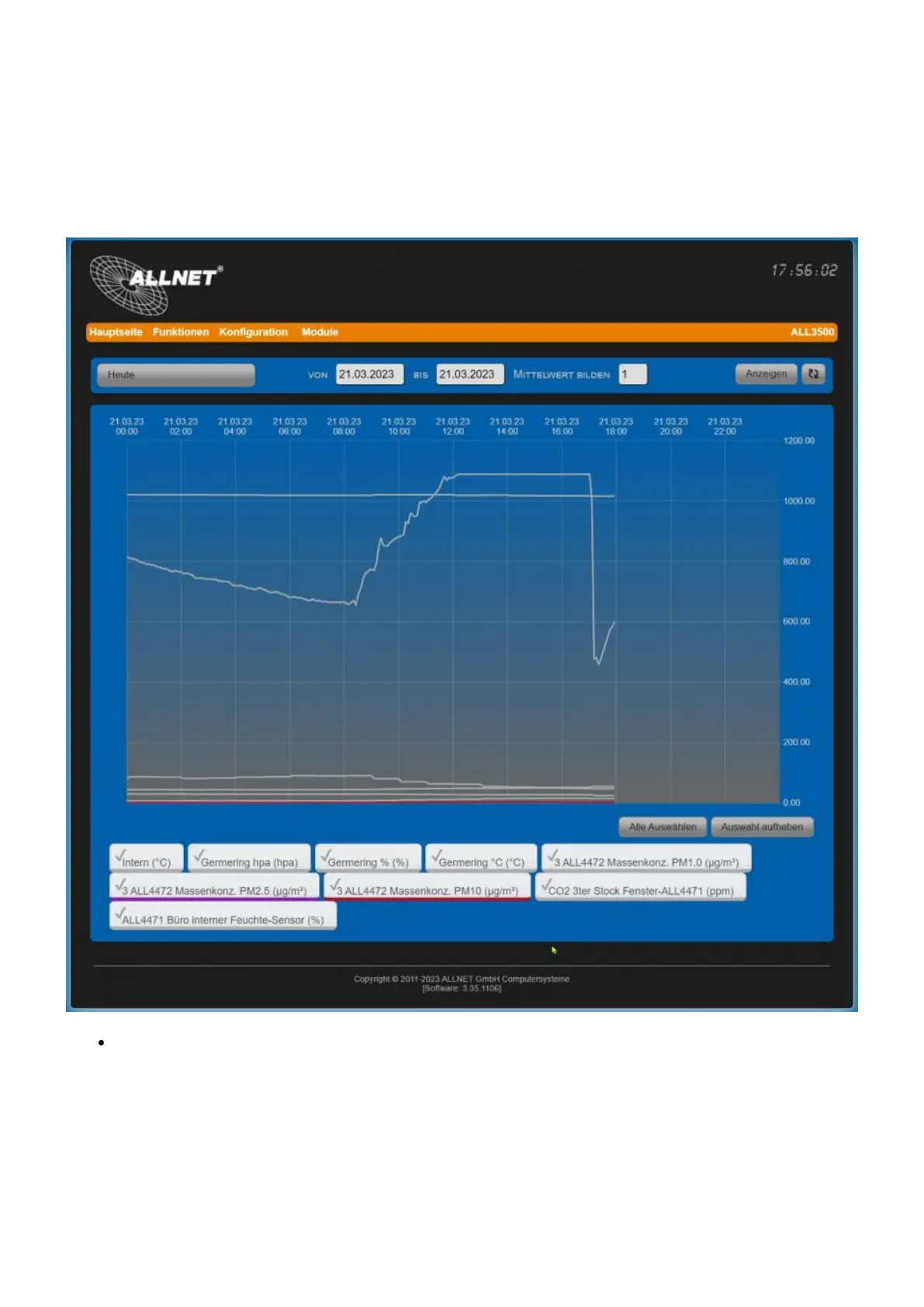 Settings under "Functions" > "Exploitation". The values of sensors can be evaluated and displayed.