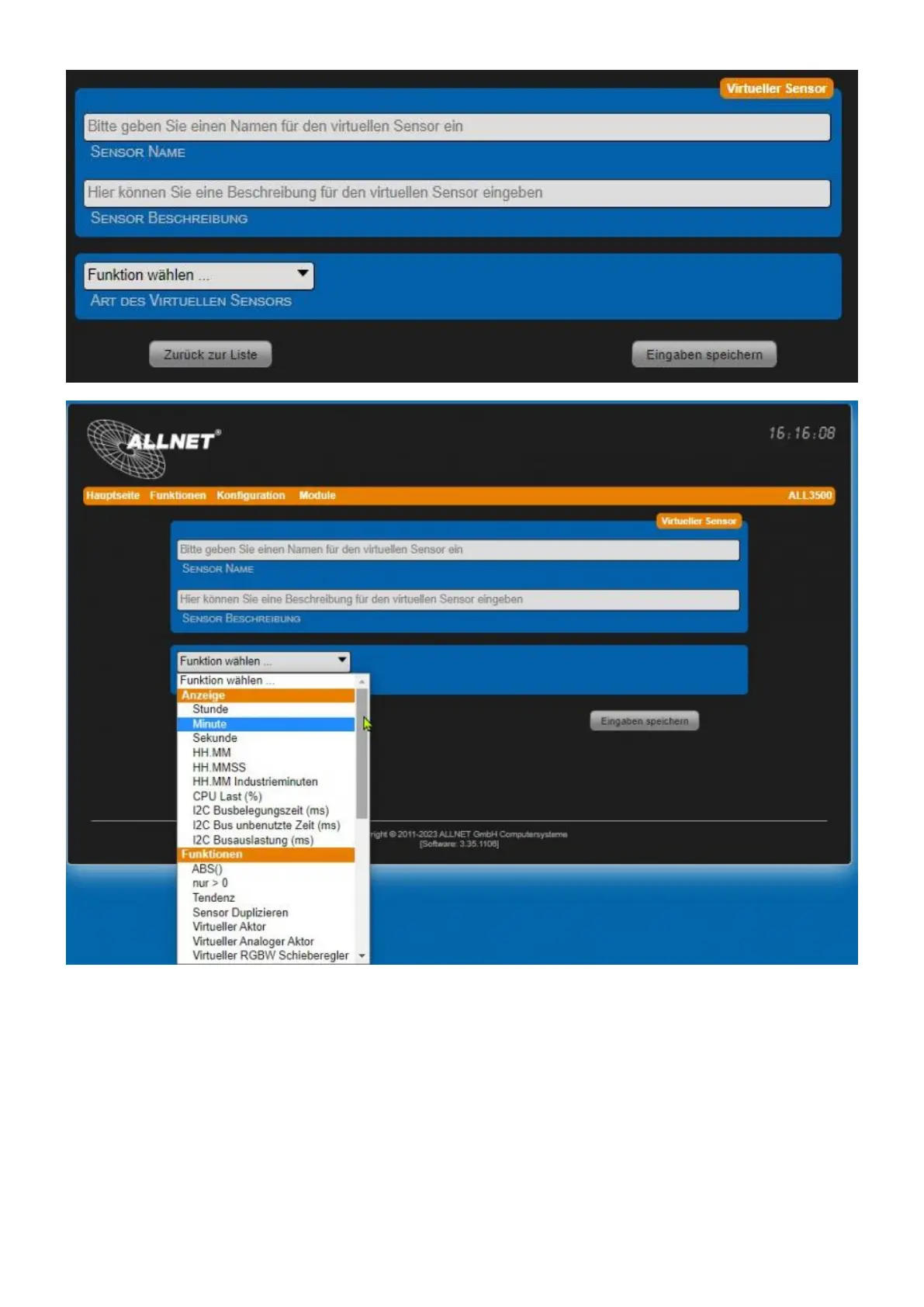 • Type of Virtual Sensor You can choose from the categories: Display, Functions, Operations,