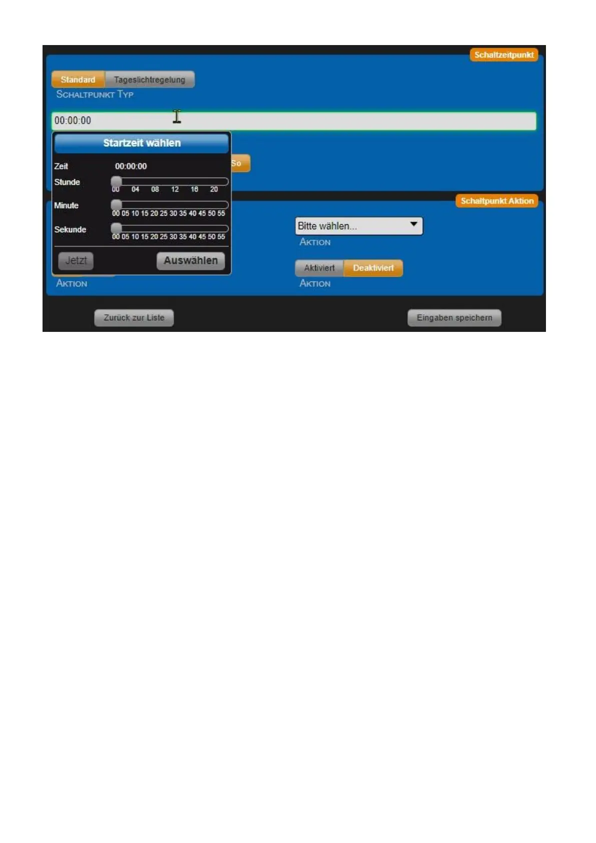 • Action (on/off) If "A" is selected, then the relay of the selected actuator is closed at this moment.